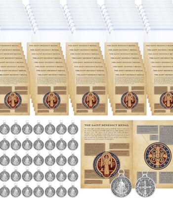 Remuuly 120 Pieces Medals Prayer Card Set, 3/4 Inch Round Silver Oxidized Medals for Necklace Holy Prayer Cards Bags for Catholic Women Men Jewelry Making (St Benedict)