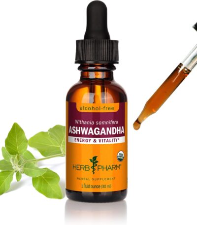 Herb Pharm Organic Ashwagandha Liquid Extract, Alcohol-Free: Mood Support Supplement, Vegan Ashwagandha Root Glycerite, Tasty Non-Bitter Adaptogen Extract for Adults, Non-GMO, 1 Oz