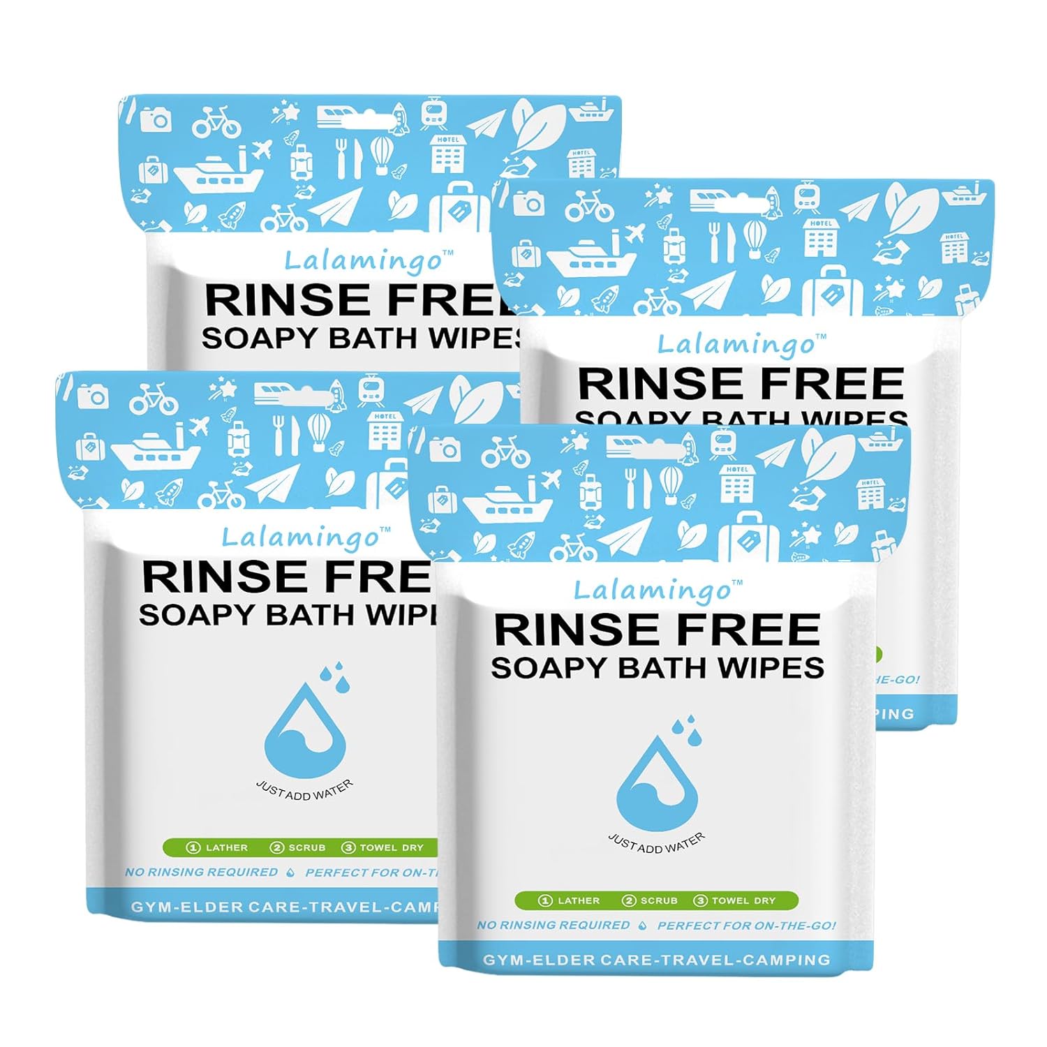 Bathe Without Soap: Our dry wipes are infused with cleansing foam. Use towels or cloths to wipe off the lather. They are excellent as emergency supplies, hurricane recovery aids, or items for assisting the homeless.