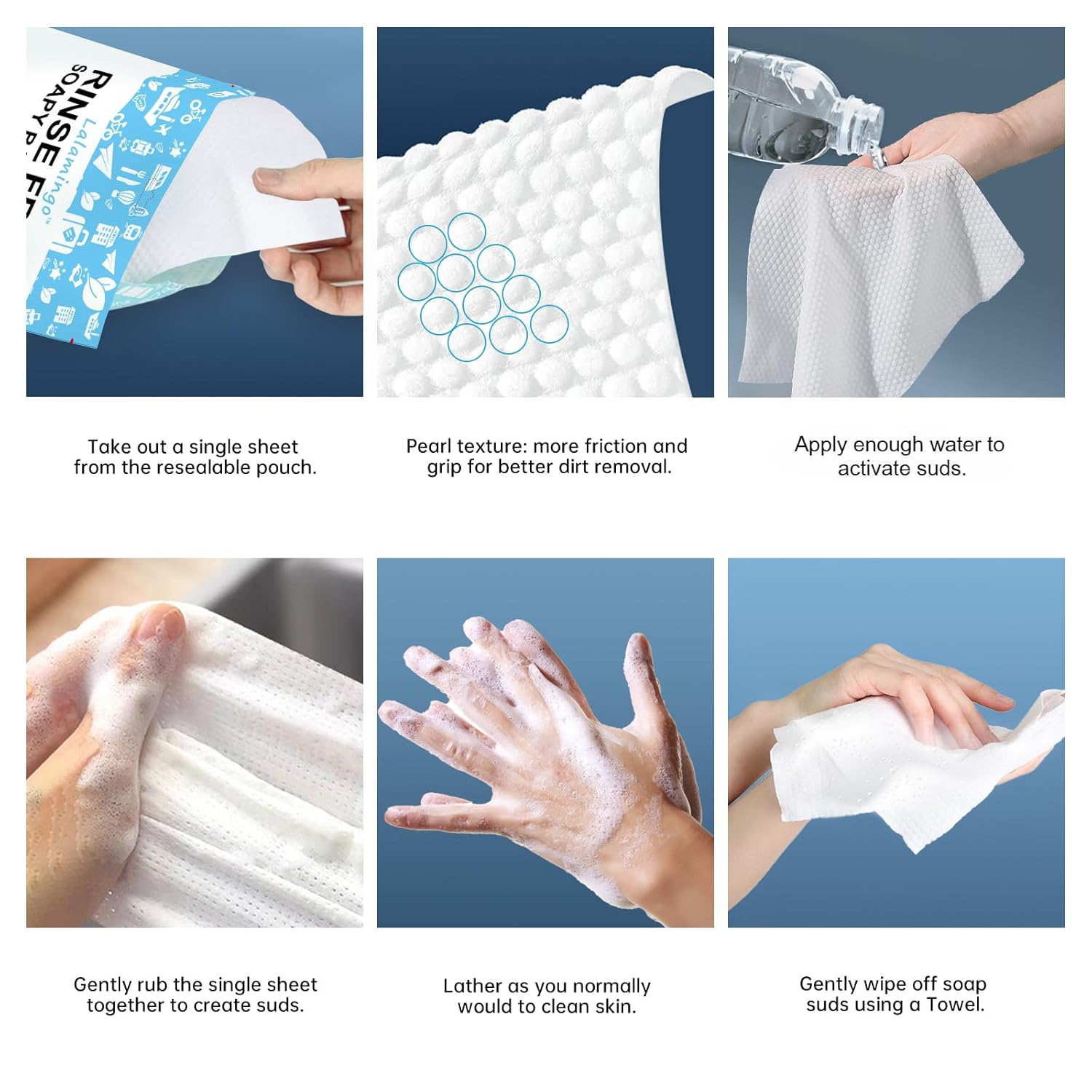 Convenience of Use: Take a dry wipe, add enough water to soak it thoroughly. Rub to get foam, wipe the skin, and towel dry. No rinsing needed. Get a clean and refreshing body anytime, anywhere with simple steps. It’s super convenient.