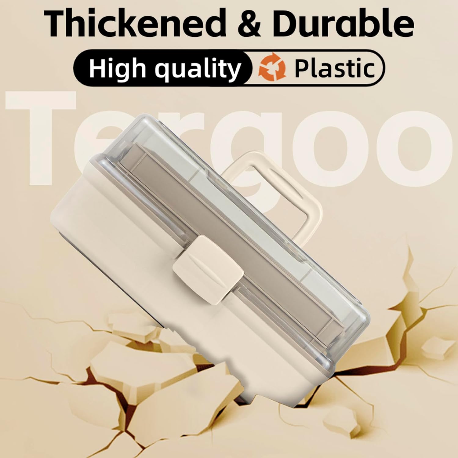 Large capacity: Dimensions 14.5”L×7.5”W×7”H. 3-Layer plastic storage box with 2 folding trays and 6 dividers inside. Reasonable spatial planning, with each layer storing items of different sizes.