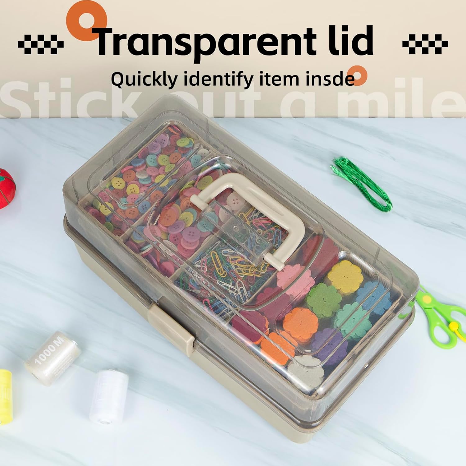 Premium & Durable: Made of high quality plastic materials, with a long service life. The sturdy latch securely closes the art supply organizer to prevent items from pouring out. Strong brackets support trays folding, 180 ° rotation for opening and closing, making it easier to remove and place items.