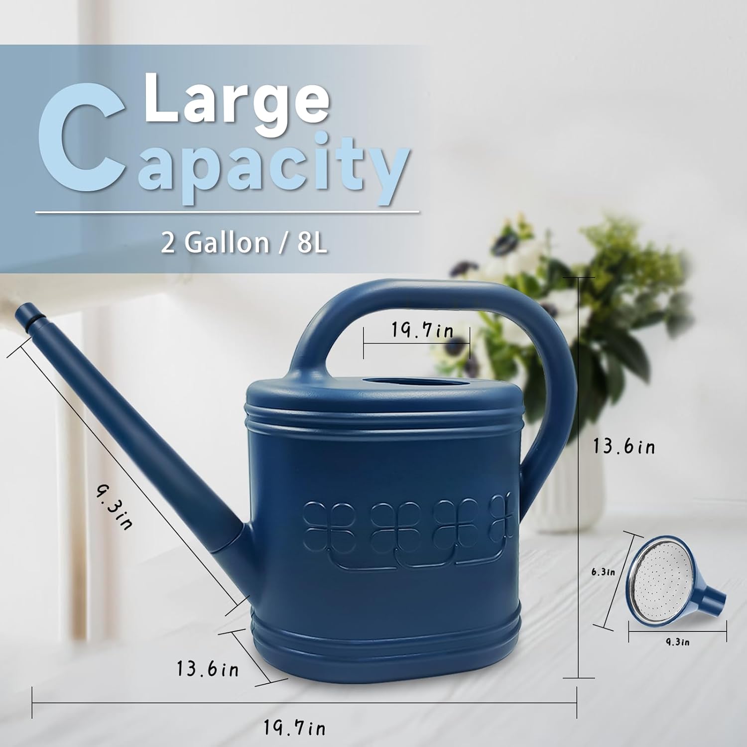 2 Gallon Watering Can, Outdoor Watering Can for Plants, Garden Water Can with Removable Long Spout and Stainless Steel Sprinkler Head, Large Water Can for Greenhouse Flowers Plants (Dark Blue)