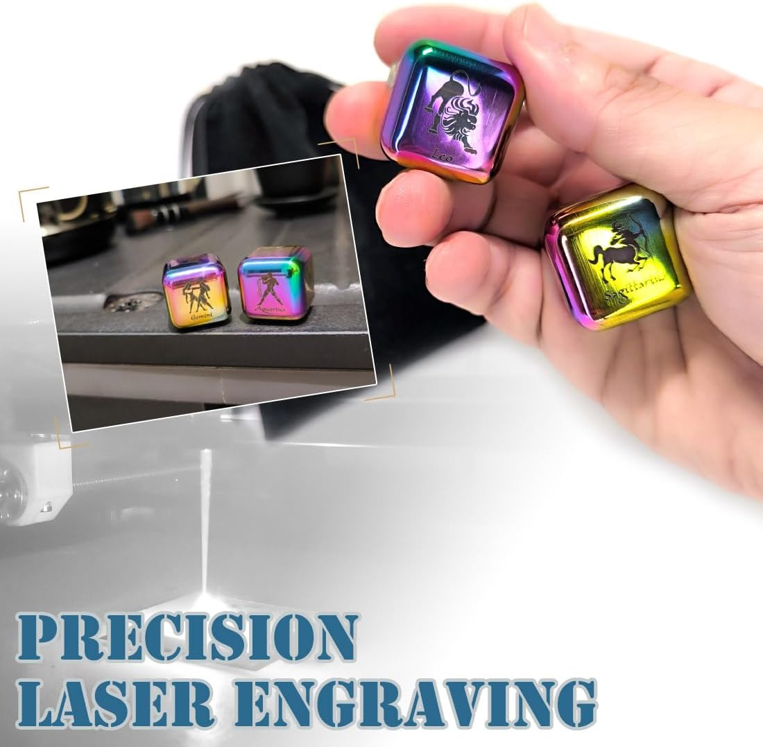 Laser Engraved for Lasting Beauty: Featuring intricate Zodiac patterns laser-engraved into the metal surface, these dice offer durability and fadeless. The precision engraving ensures that the patterns remain vibrant and legible, ensuring a lifetime of enjoyment.