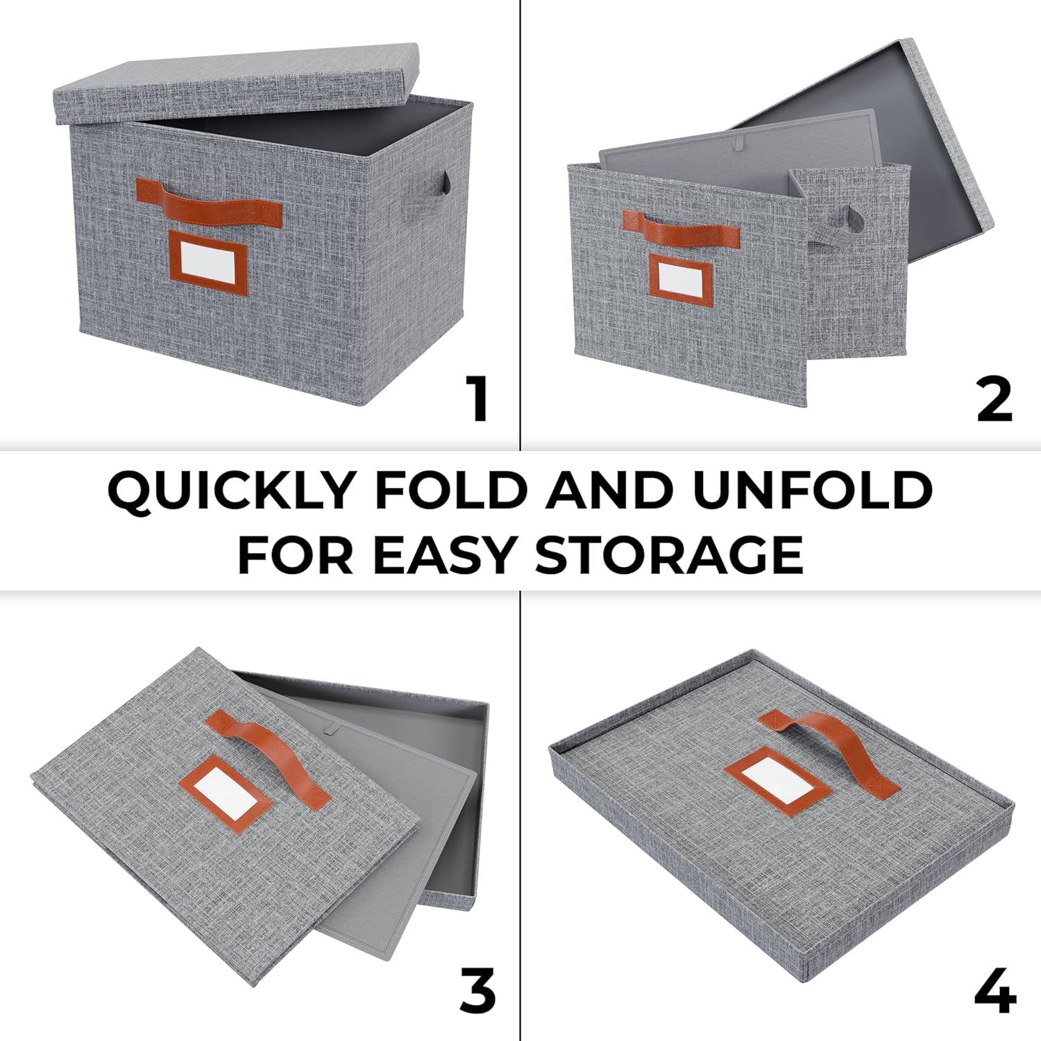 IDENTIFY WHAT’S INSIDE each foldable storage box with lid without rummaging, thanks to the built-in label holder with blank card inserts. Make organizing effortless and easily find items by marking the large collapsible storage bins with lids for closet, bedroom, or office