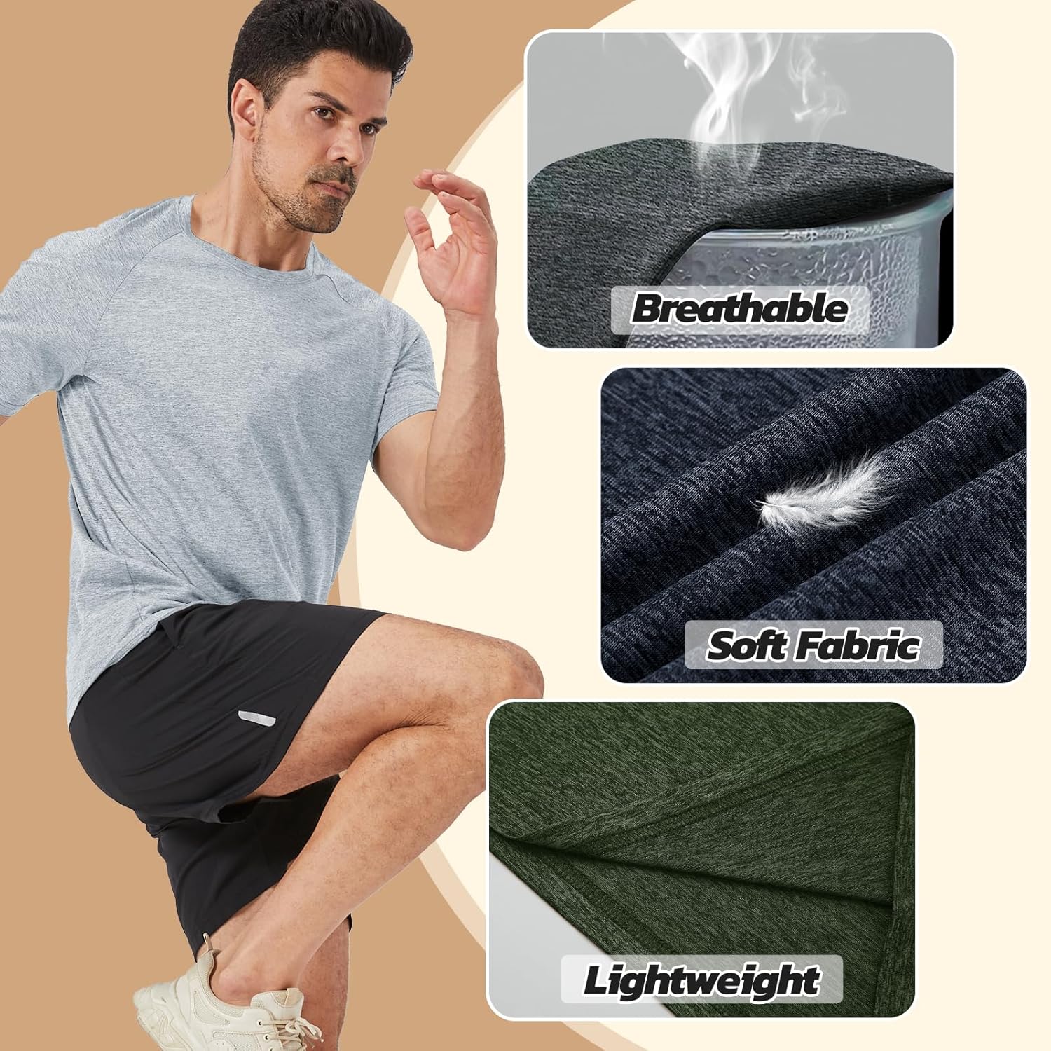 3 Pack Workout Mens Shirts – Dry Fit Causal Moisture Wicking Work Gym Athletic Short Sleeve for Basketball Running