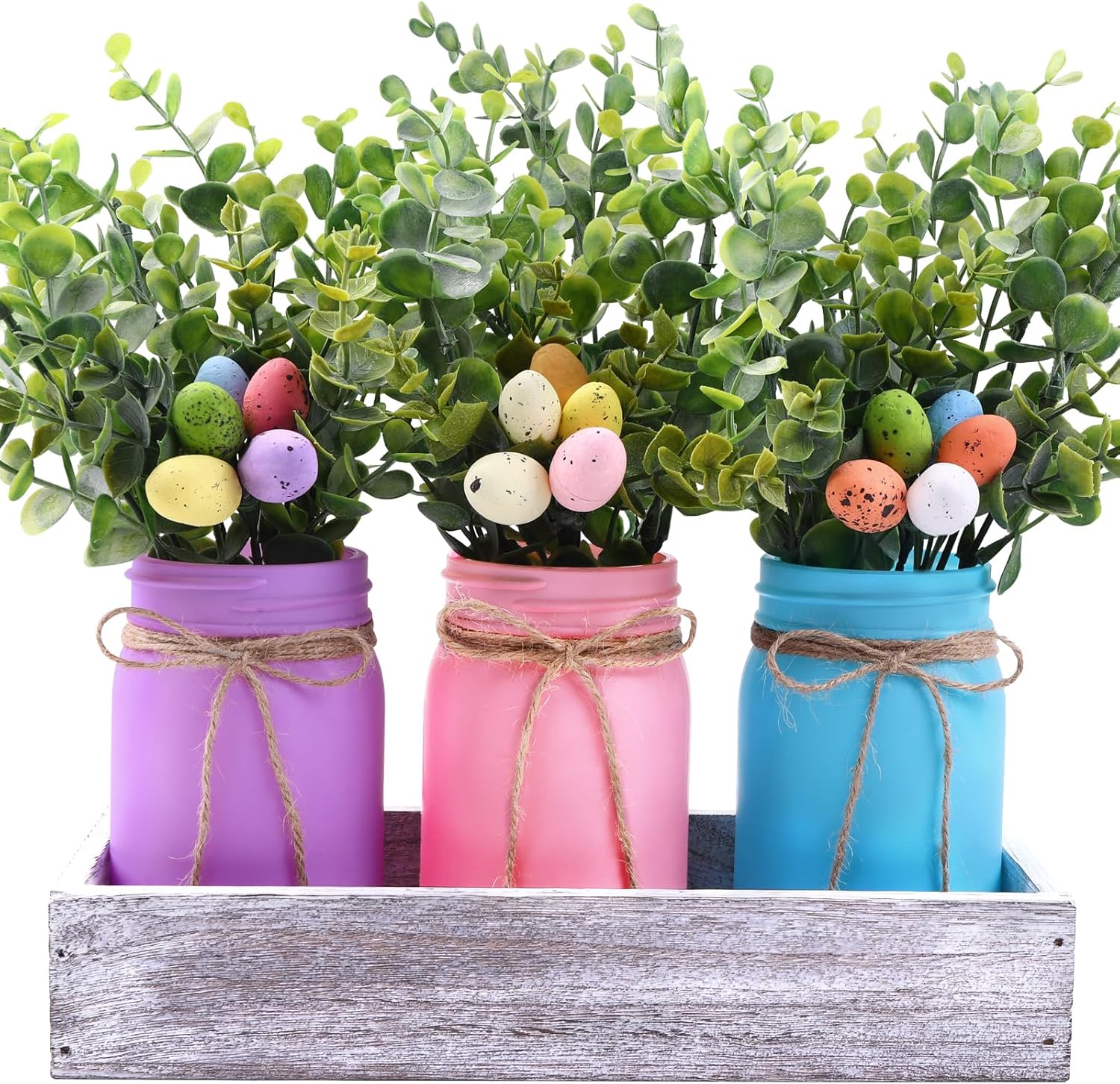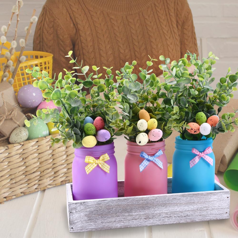 【Perfect Gift Jars】 Easter mason jars designed in pink, blue, and purple, paired with trays and artificial egg flowers, full of vitality and energy, will surprise your friends and family, making it the perfect Easter gift