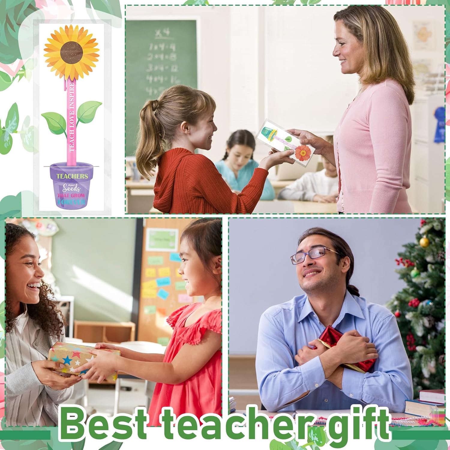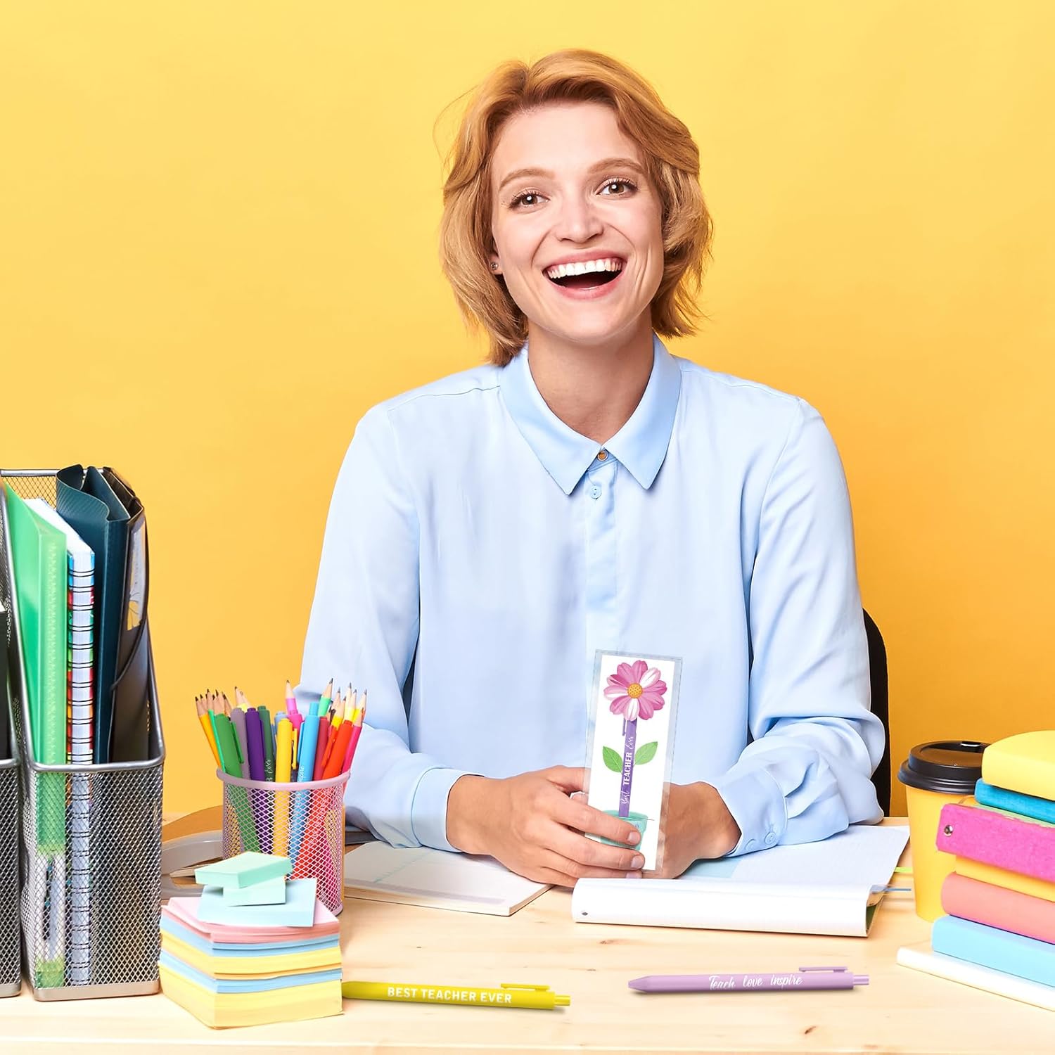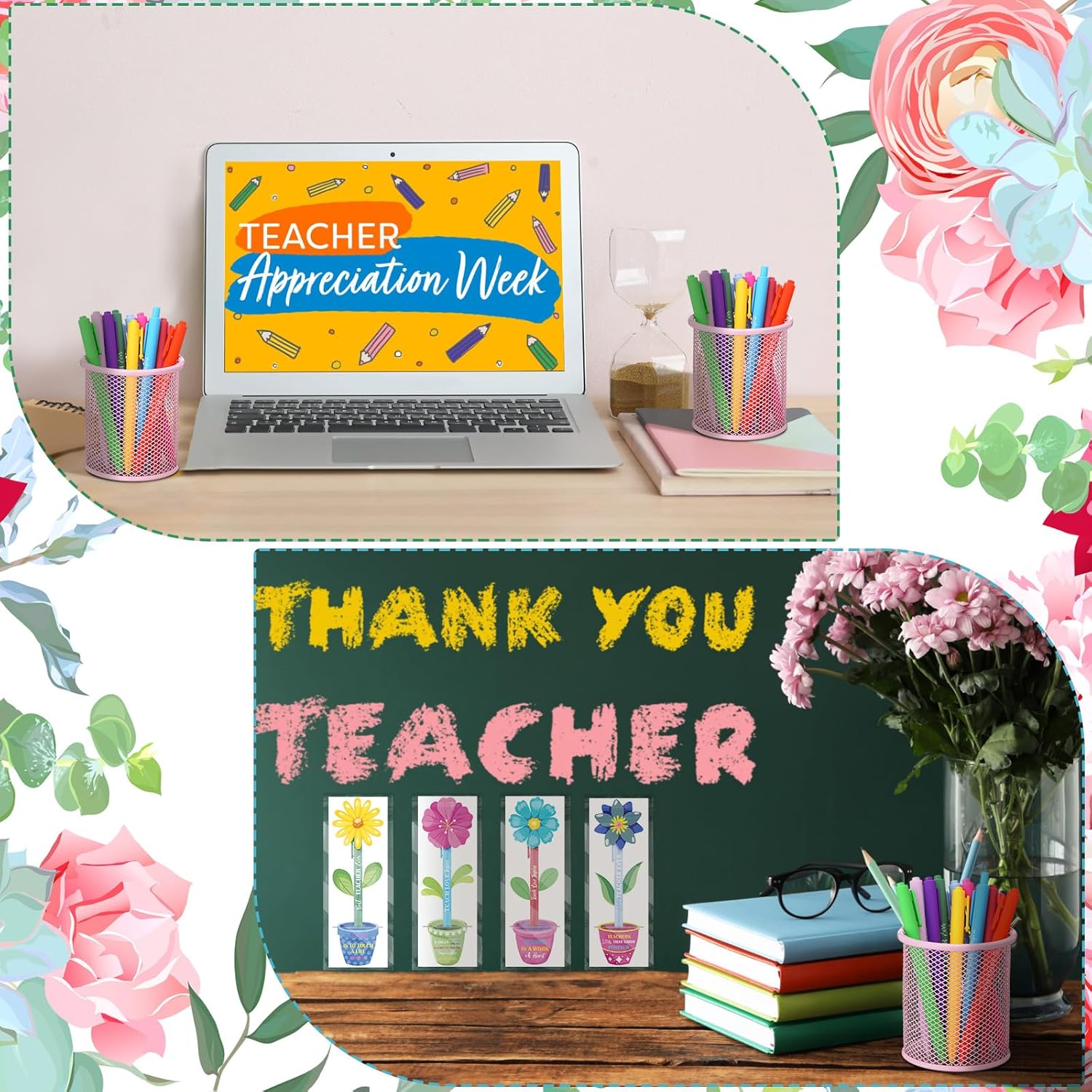 50 Set Teacher Appreciation Gift Bulk Inspirational Ballpoint Pens with Cards Motivational Flowerpot Shaped Cards Thank You Teacher Gift for Teacher School Office Supplies