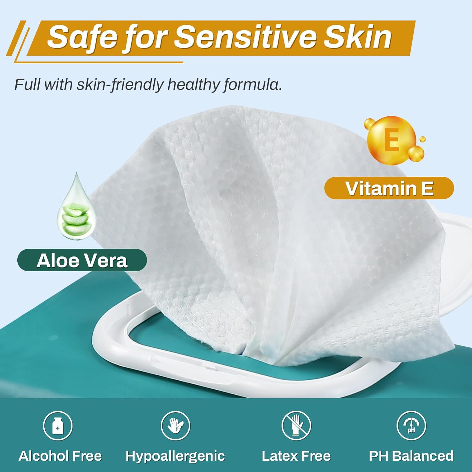 Soft, Gentle & Soothing: Infused with Aloe Vera and Vitamin E, these wipes are super soft, ultra-gentle, and soothing on the skin, making them perfect for adults, elderly, and those with sensitive skin.