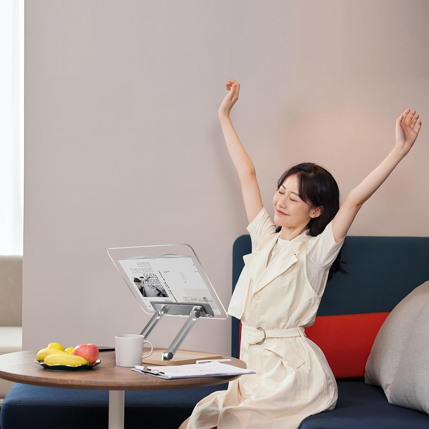 1 review for Adjustable Acrylic Book Stand for Reading, UPERGO Book Holder with Pen Slot, Foldable Desktop Riser for Laptop, Recipe, Textbook – Hands-Free,Cookbook Stand, Clear Design with Page Clips