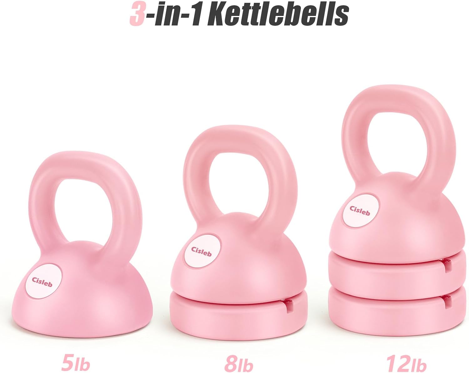 I decided to increase my kettlebell weight. I had 5lb.bells, they had cover time gotten to feel like lifting almost nothing. Great on me, it was due largely to using the 5’s to do a particular set of moves for almost a year, so, I wanted to increase my weight but, maybe not double ( as most bells next step is 10lbs.) .I saw that this set was 5lbs, 8ibs.& 12lbs….so, I thought that was a “happy medium”.I was very happy to note that it was super smooth and easy to add & subtract weight.They also stay together very well. I likes the color choices & it’s a really nice piece of equipment in general. Awesome value for the price!