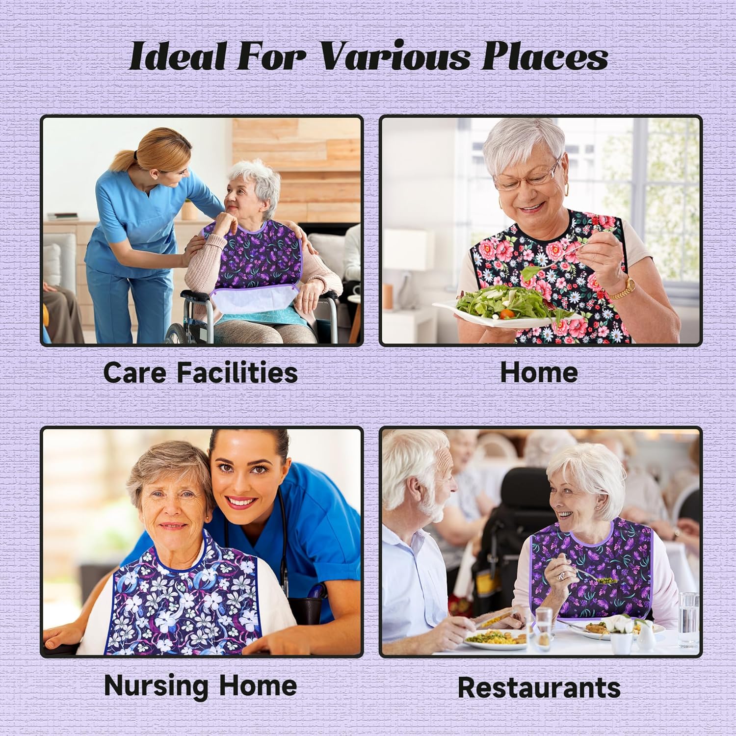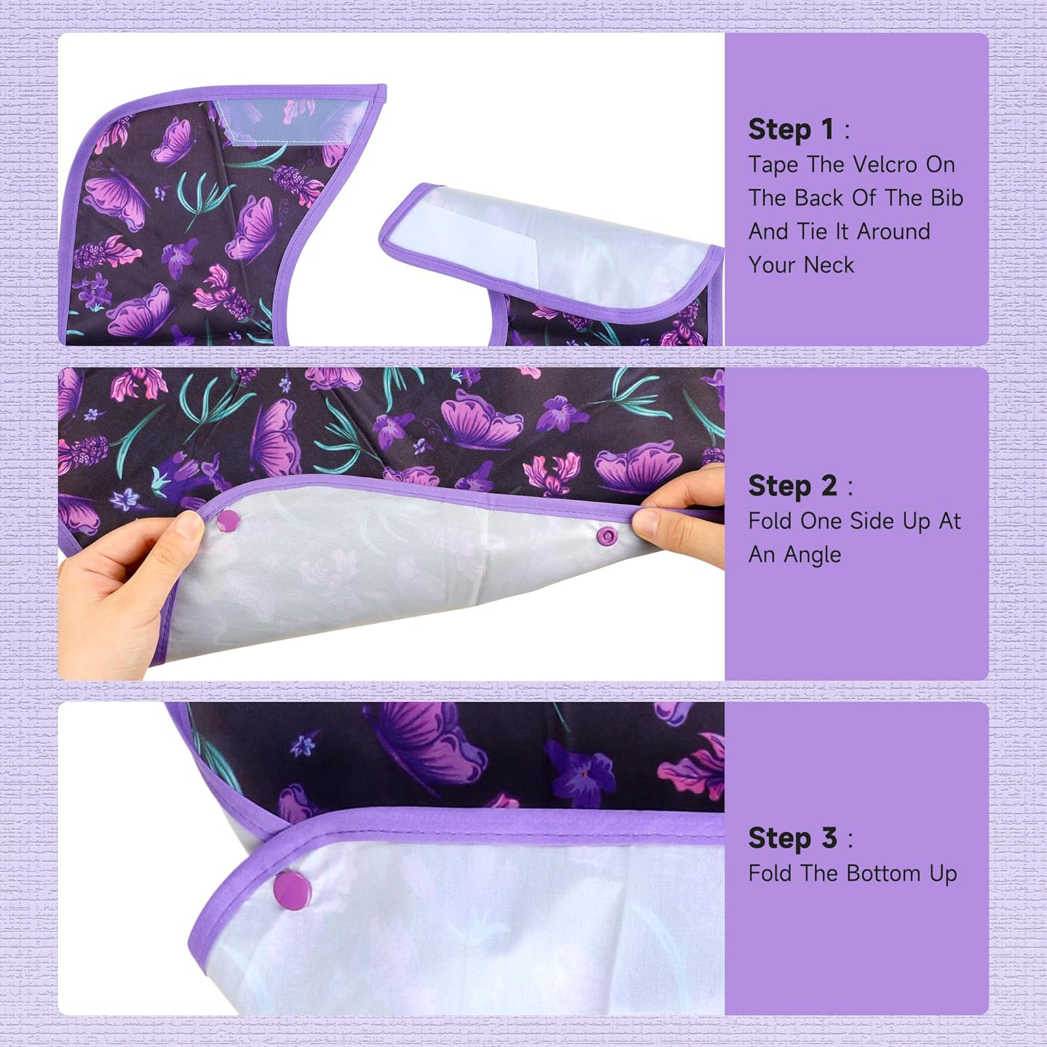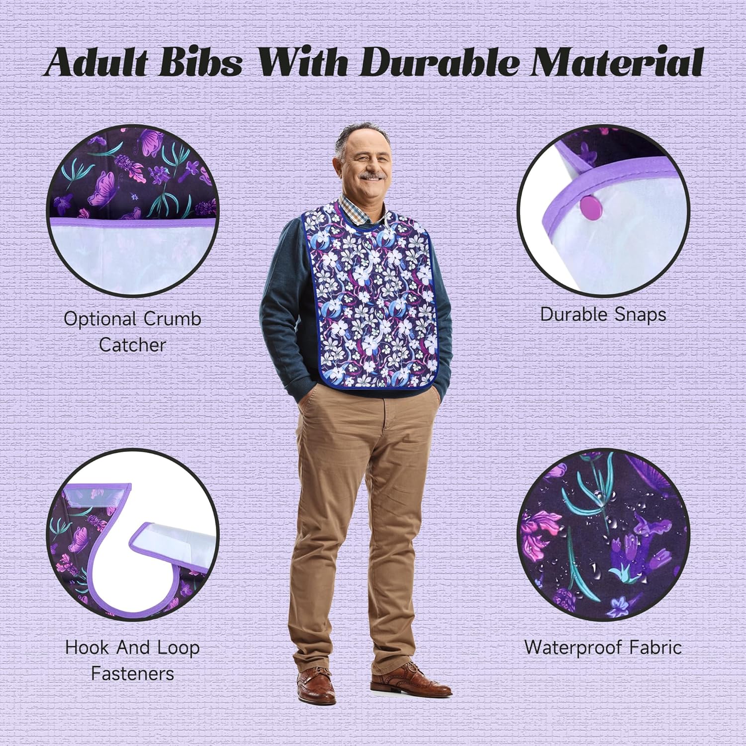 Adult Bibs – 3 Pcs Washable Clothing Protector with Crumb Catcher, Reusable Waterproof Large Feeding Adult Bib