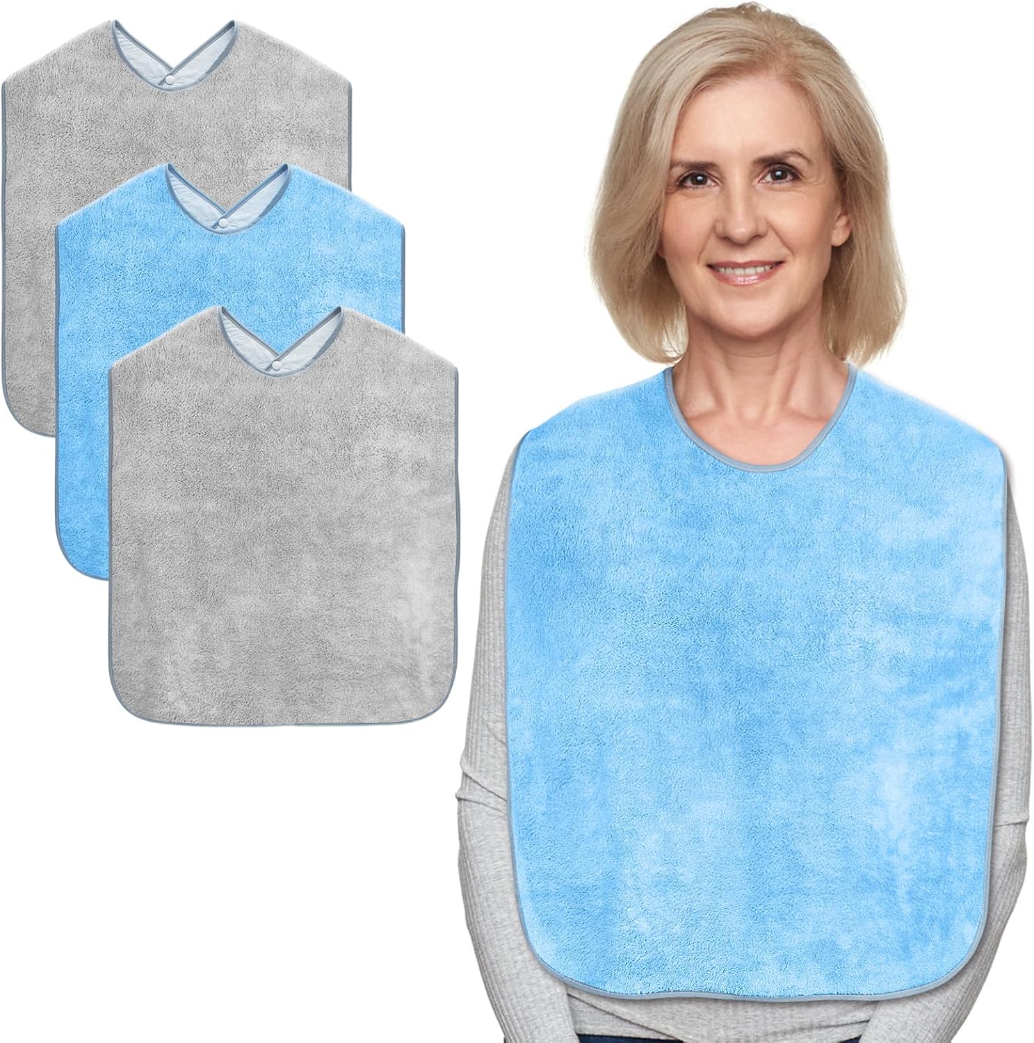 Adult Bibs for Men and Women 4 Packs, Reusable Terry Bibs for Elderly Senior, Waterproof Towel for Adults