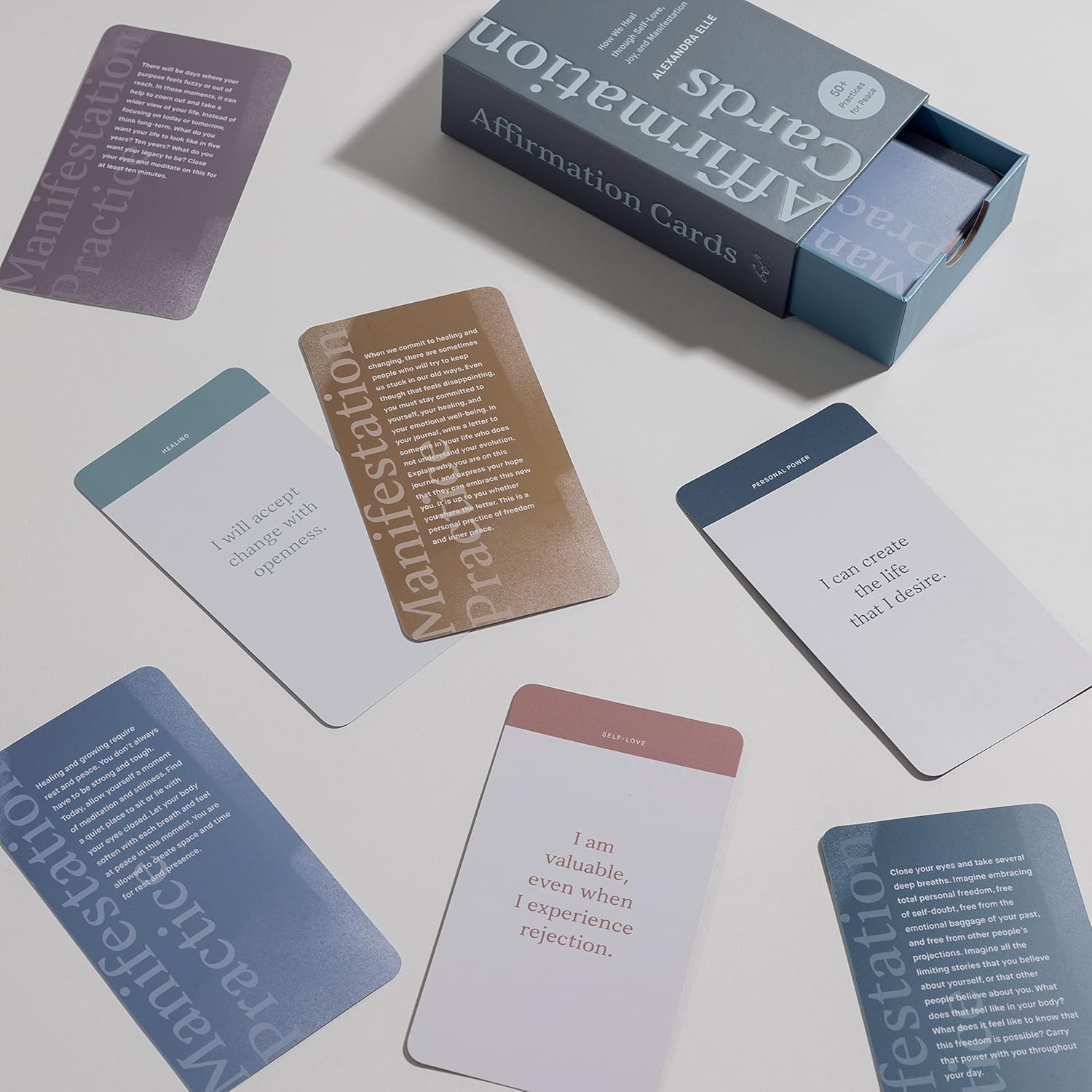Affirmation Cards is a deck of 55 cards, each featuring an uplifting affirmation on the front and a meditation practice on the back. Organized into six categories—Self-Love, Personal Power, Self-Trust, Letting Go, Boundaries, and Healing—these cards are designed to help you tap into moments of peace, clarity, and connection in your day-to-day life. Delivered in a luxe, take-anywhere package, this deck is a gorgeous accessory for wellness enthusiasts, meditators, and fans of Alexandra Elle.
