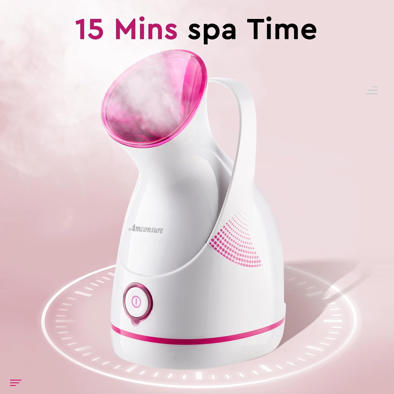 【Super Strong Amount of Mist, Deep Hydration】Amconsure facial steamer is a new type of steamer that generates nano-ionic steam,Full-Powered Steam only within 30 seconds, turns clean water into Micro-Fine particles to produce a powerful, consistent mist. The mist of this face humidifier is warm and safe to smell, no harm to your skin, you can enjoy a relax steaming with consistent mist for 10 minutes.