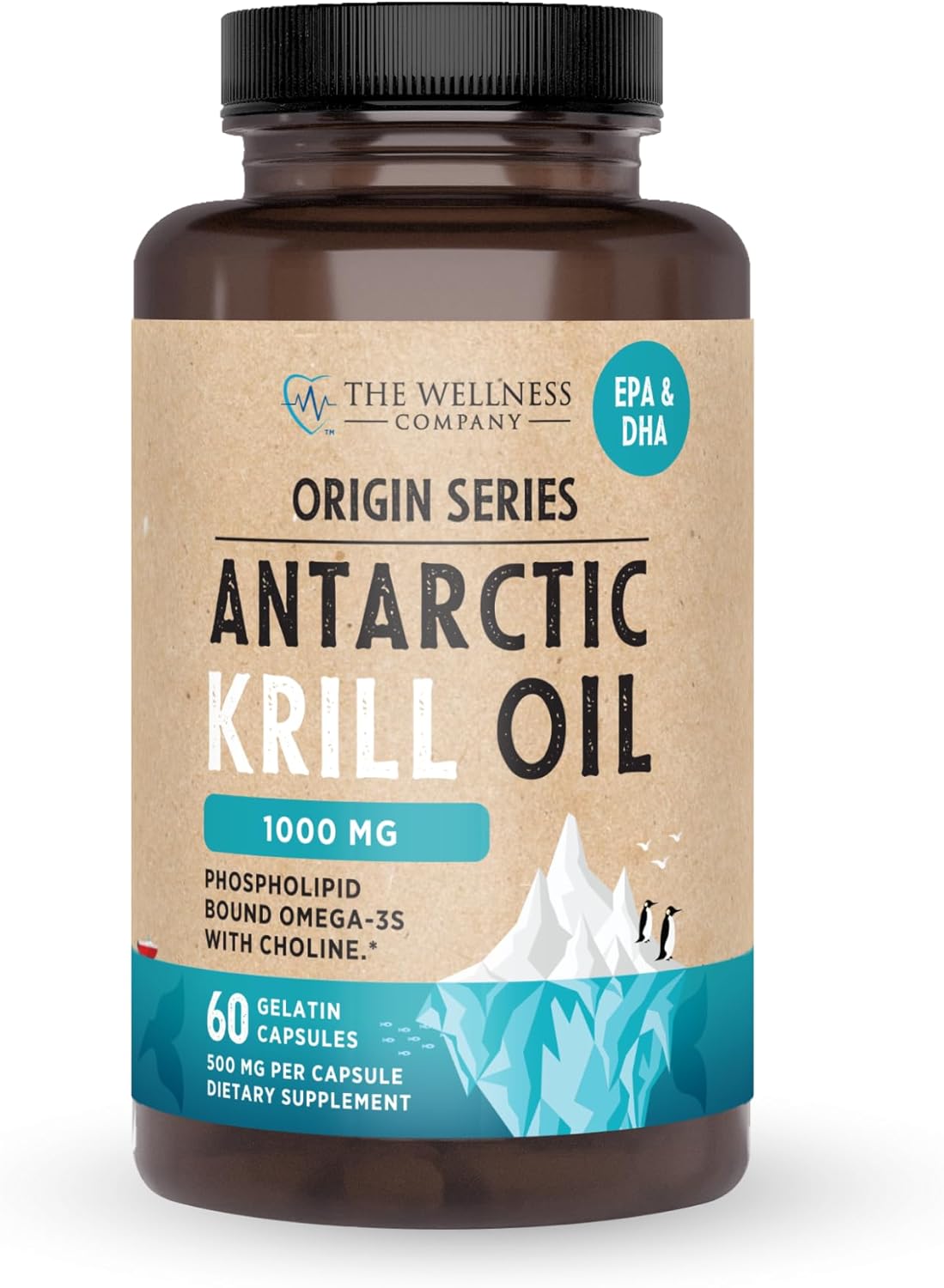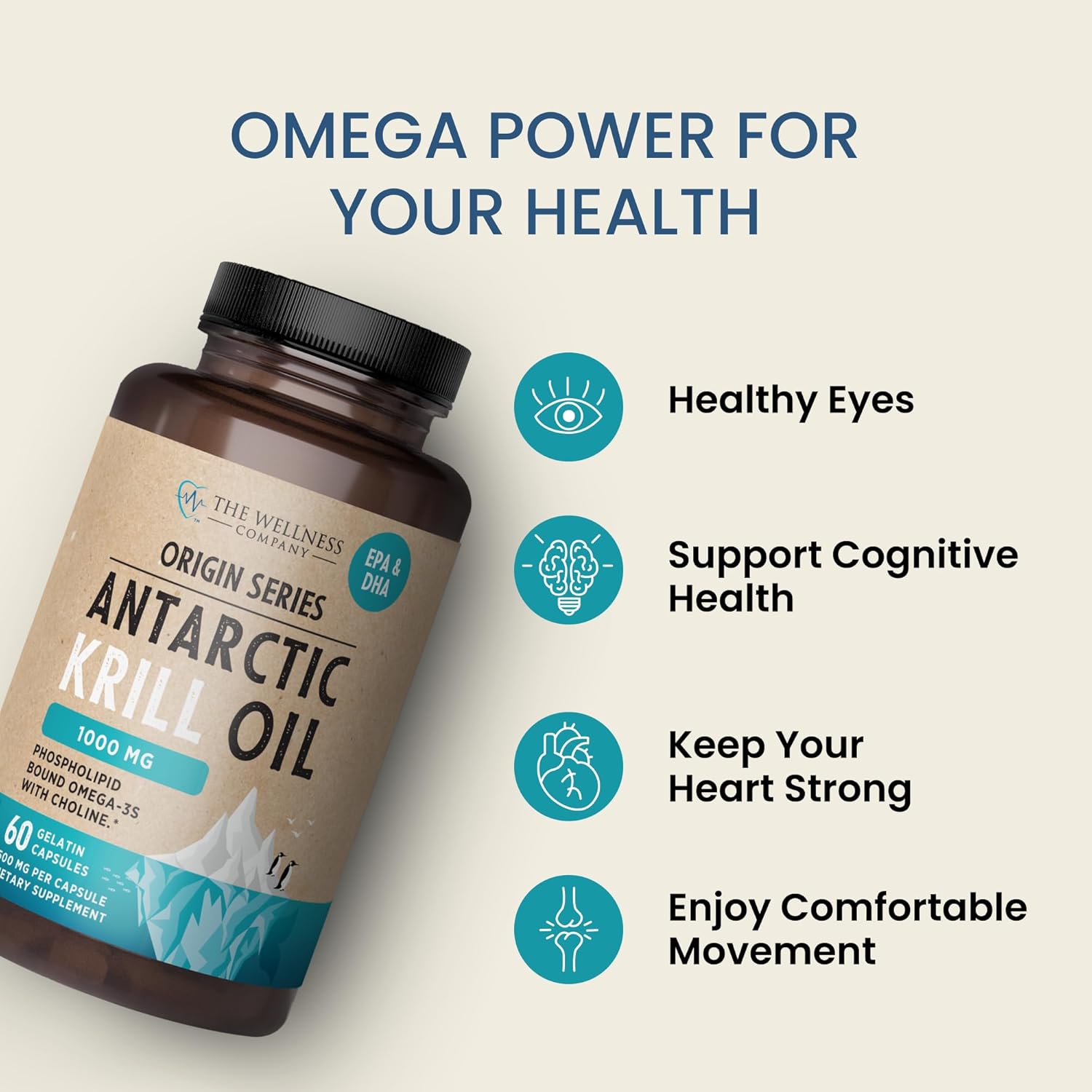 Antarctic Krill Oil – 1000mg Omega-3 Supplement with EPA, DHA & Astaxanthin – Phospholipid-Rich for Heart, Brain, Joint & Immune Support – No Fishy Aftertaste – 60 Softgels