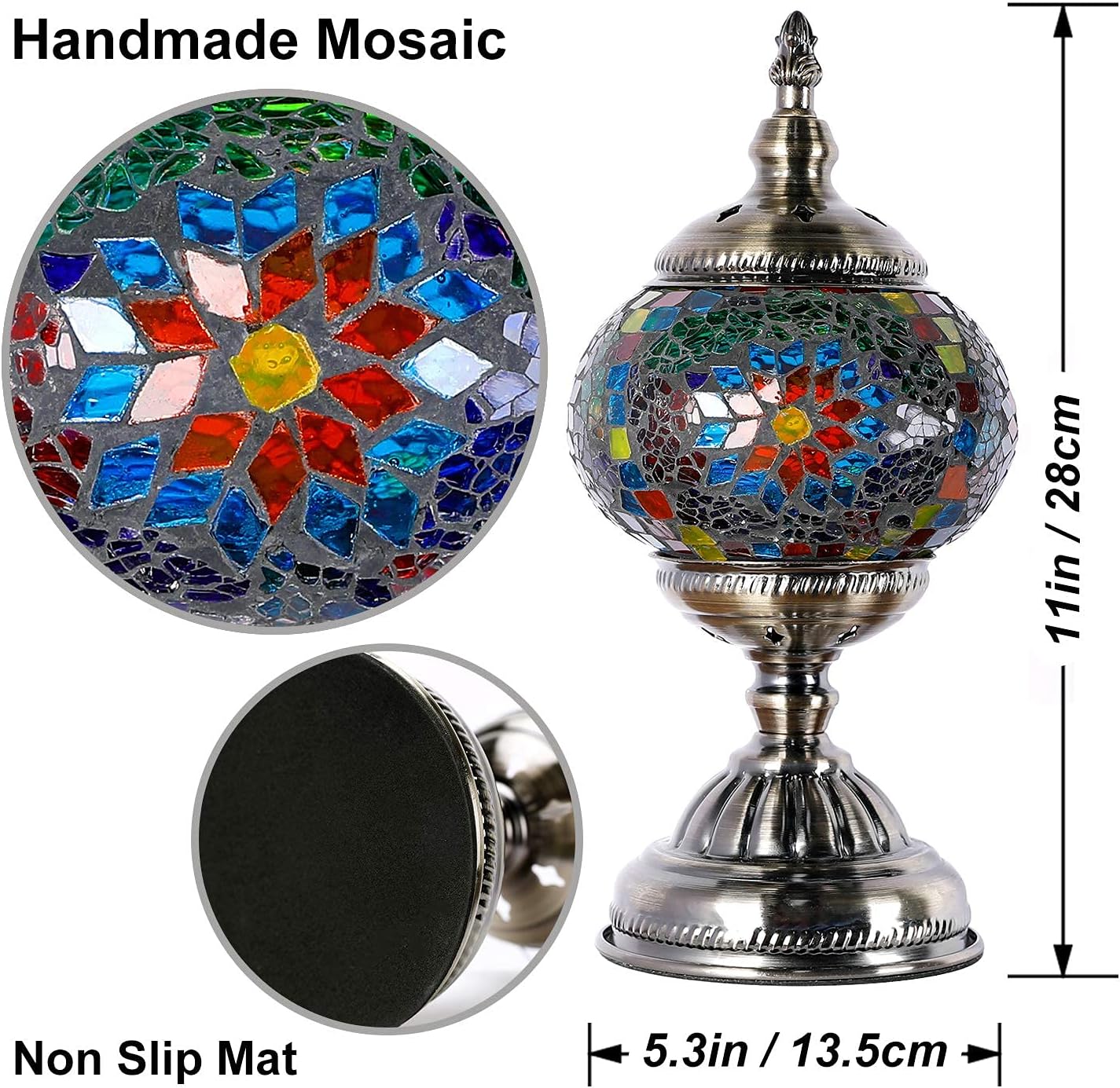 Decoration: This small decorative mosaic table lamp just like exquisite artwork, gives a lovely low light and creates a warm romantic intrigue, decorating any room. Exquisite home decor.Size: 11″*5.3″*5.3″(28*13.5*13.5cm).