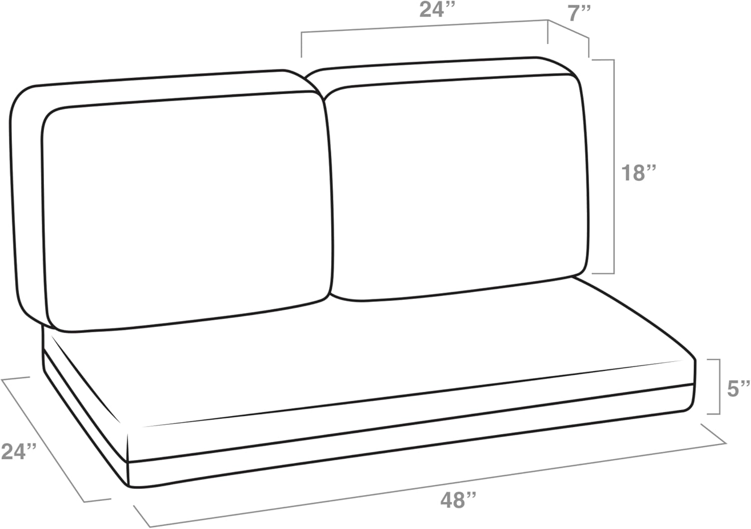 Dimensions Pillow : 24 in W x 18 in L x 7 in T and Loveseat: 48 in W x 24 in L x 5 in T