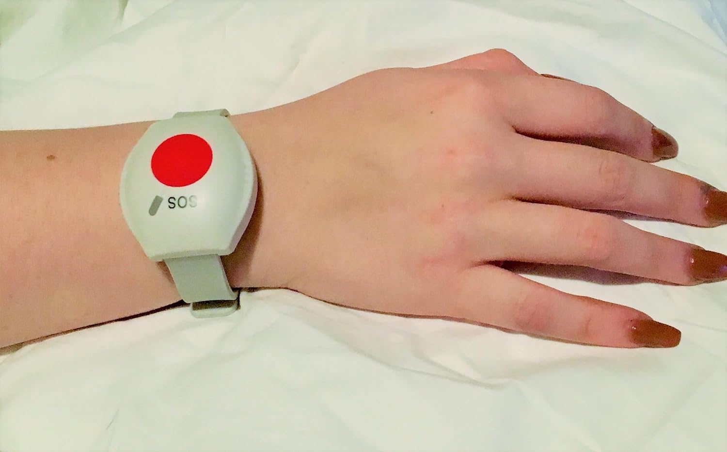 Pacemaker Safe – 100 Foot Range – Water Resistant Wrist Panic Button (You can shower and bathe with it).