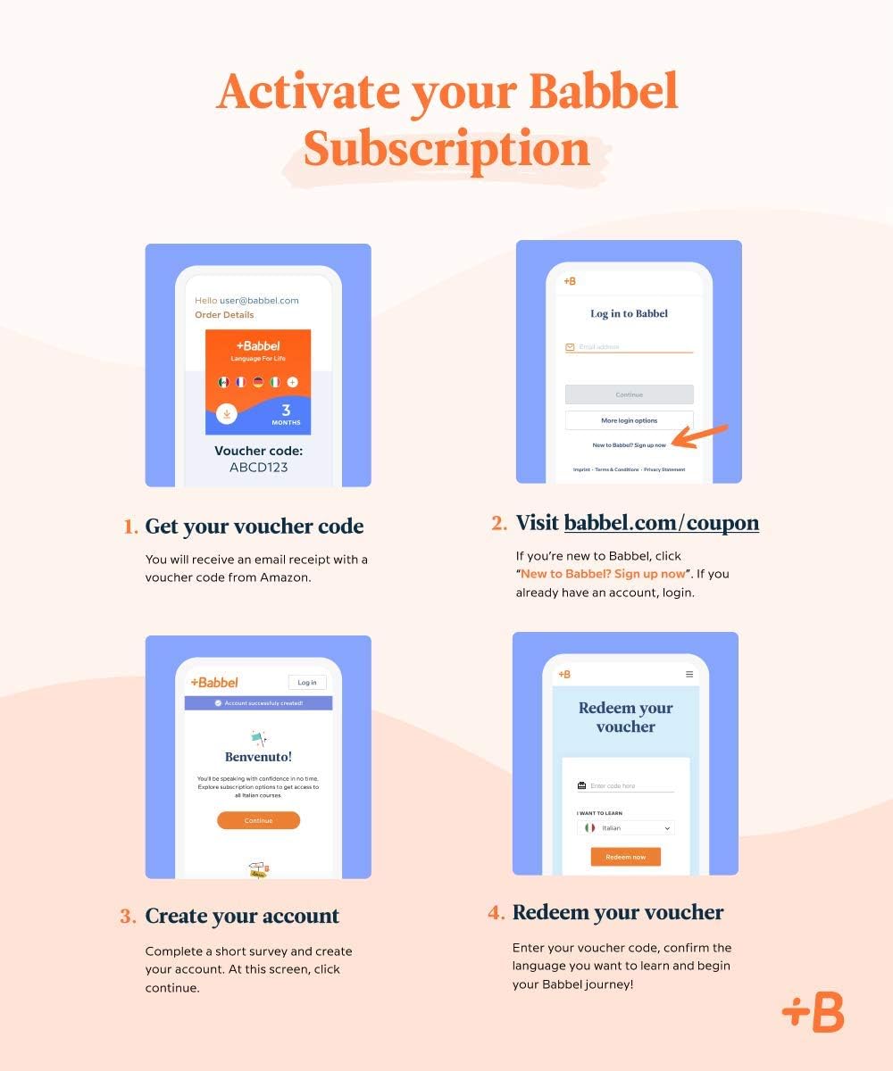 INSTANT DOWNLOAD CODE: Receive your activation code via email, go to our website via the link in the email, create your account and redeem your voucher. Once your account has been activated, download the Babbel app and get learning
