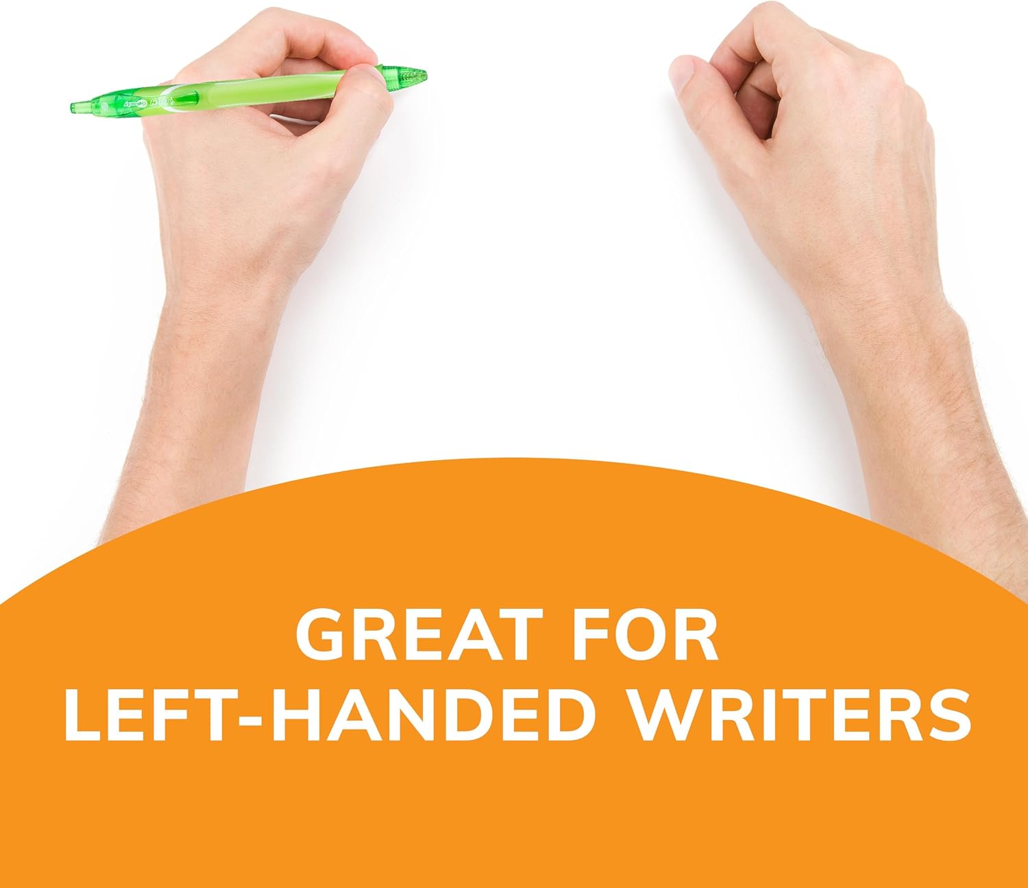 Experience vivid colors and smooth writing with BIC Gelocity Quick Dry Ocean Themed Gel Pens. These 0.7mm medium point gel pens are perfect for everyday writing at work, school or home and feature bold vibrant ink that is smear resistant and dries in as little as five seconds. These pens also have easy-flowing ink that writes fluidly and effortlessly. Creating clear, dark lines, they’re the ideal gel pens for writing lists, taking notes, journaling, drawing and more. BIC Gelocity Quick Dry Gel Pens are a smart choice for left-handed writers, as the vibrant colorful ink dries in as little as five seconds to prevent smearing. The round barrel features a full-length grip that offers a controlled yet comfortable hold, making it ideal for prolonged writing sessions. Plus, the plastic clip easily attaches to pockets, notebooks and more for quick access on the go. Designed for convenience, these retractable gel pens let you start writing with just one click. Gel ink pens are smooth writing pens that are easier to use for long periods of time than a standard ballpoint. With this 16-count pack of gel pens, you can write clearly and comfortably for hours. Looking for reliable gel pens for school or office supplies? Choose BIC Gelocity Quick Dry Rainbow Gel Pens for a high-quality, safe and affordable product you can trust.