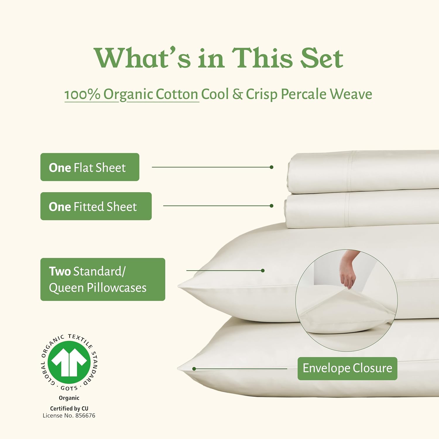 ORGANIC COTTON SHEETS : Our organic cotton queen sheet set cooling sheets is by the Global Organic Textile Standard (GOTS).