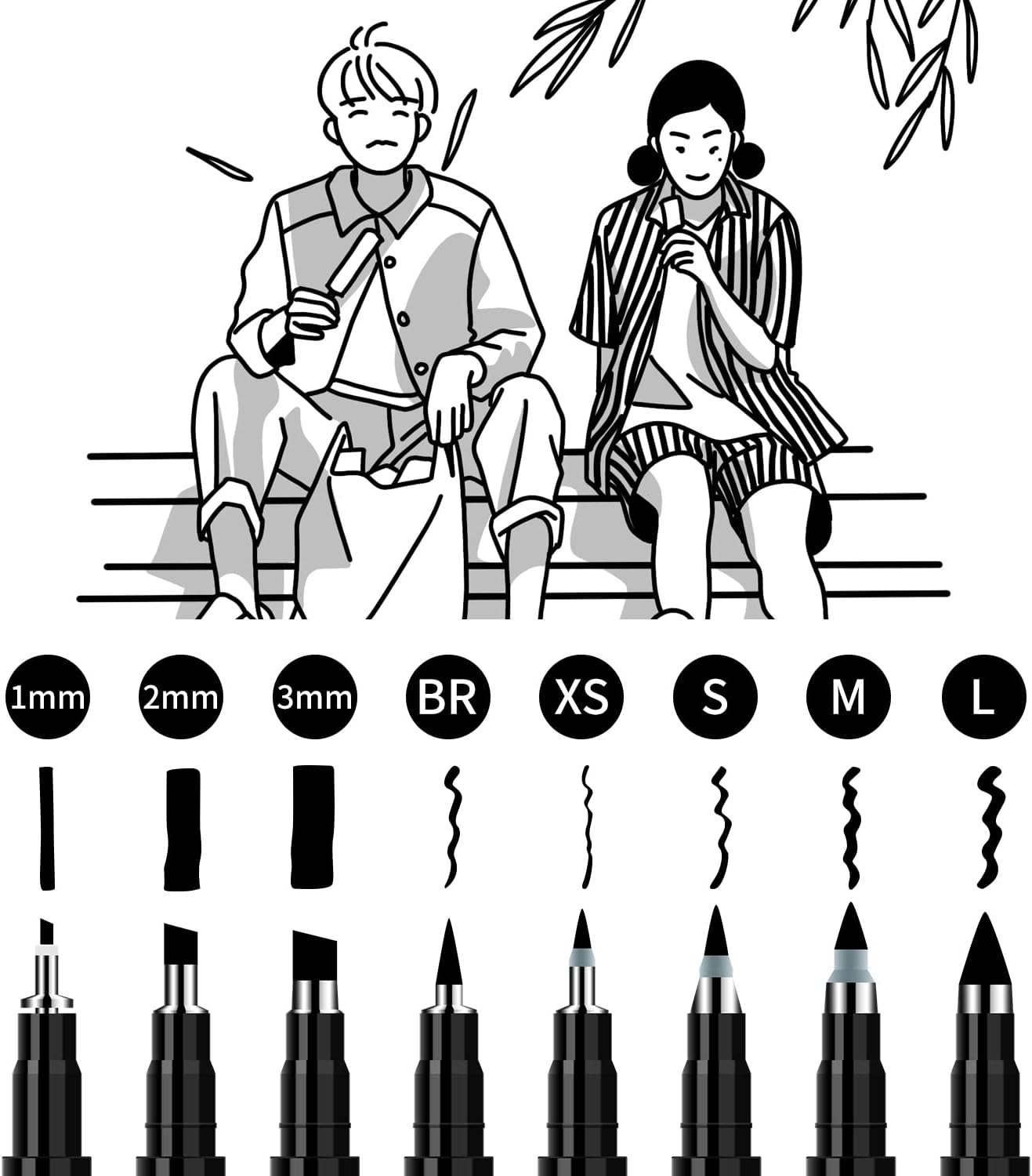 Different Size Nibs: Includes 1mm, 2mm, 3mm, extra-fine, fine, medium, brush, and soft brush for various hand lettering and calligraphy styles.