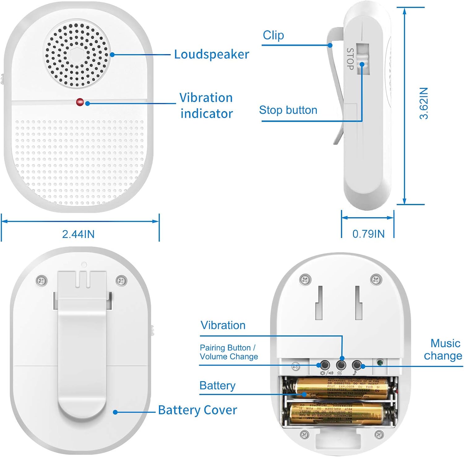 [Portable with Vibration Reminder] The battery receiver is portable,Bring it with you everywhere by keeping it in pocket/bag or attach it with the included belt clip.The pager will ring and vibrate and flash when press the call button