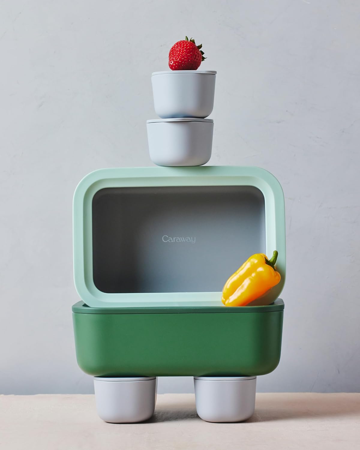 CREATE YOUR OWN BENTO BOX: Add Caraway’s Dot & Dash Containers to build an on-the-go bento box. They fit neatly in one of our 6.6 cup glass food containers for a lunch that stays fresh and seals tight