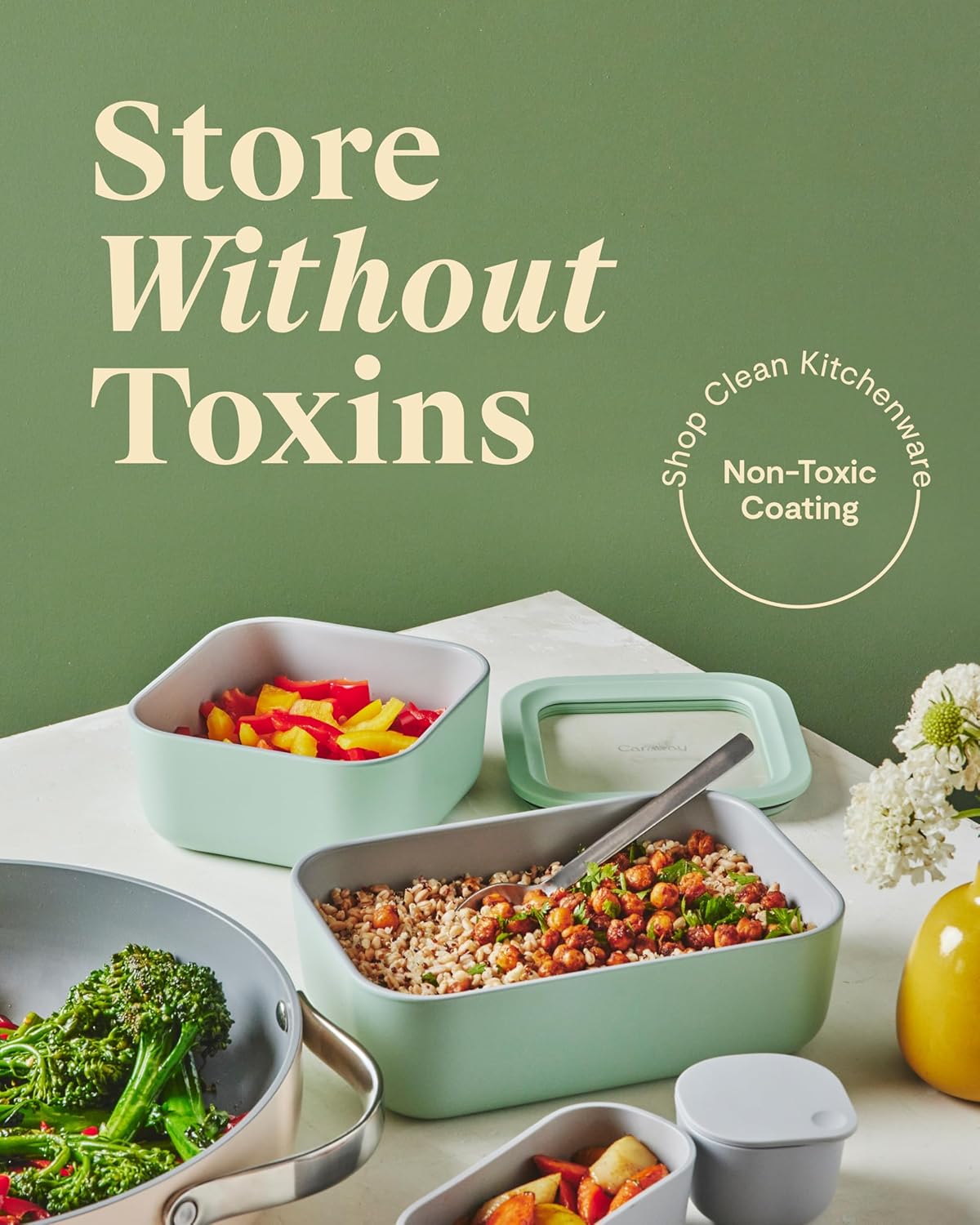 BEAUTIFULLY DESIGNED: The cleanest, best-looking approach to storing your food. Our glass container features a clear glass lid for easy viewing Each container comes in modern colors that will match with your entire Caraway collection.