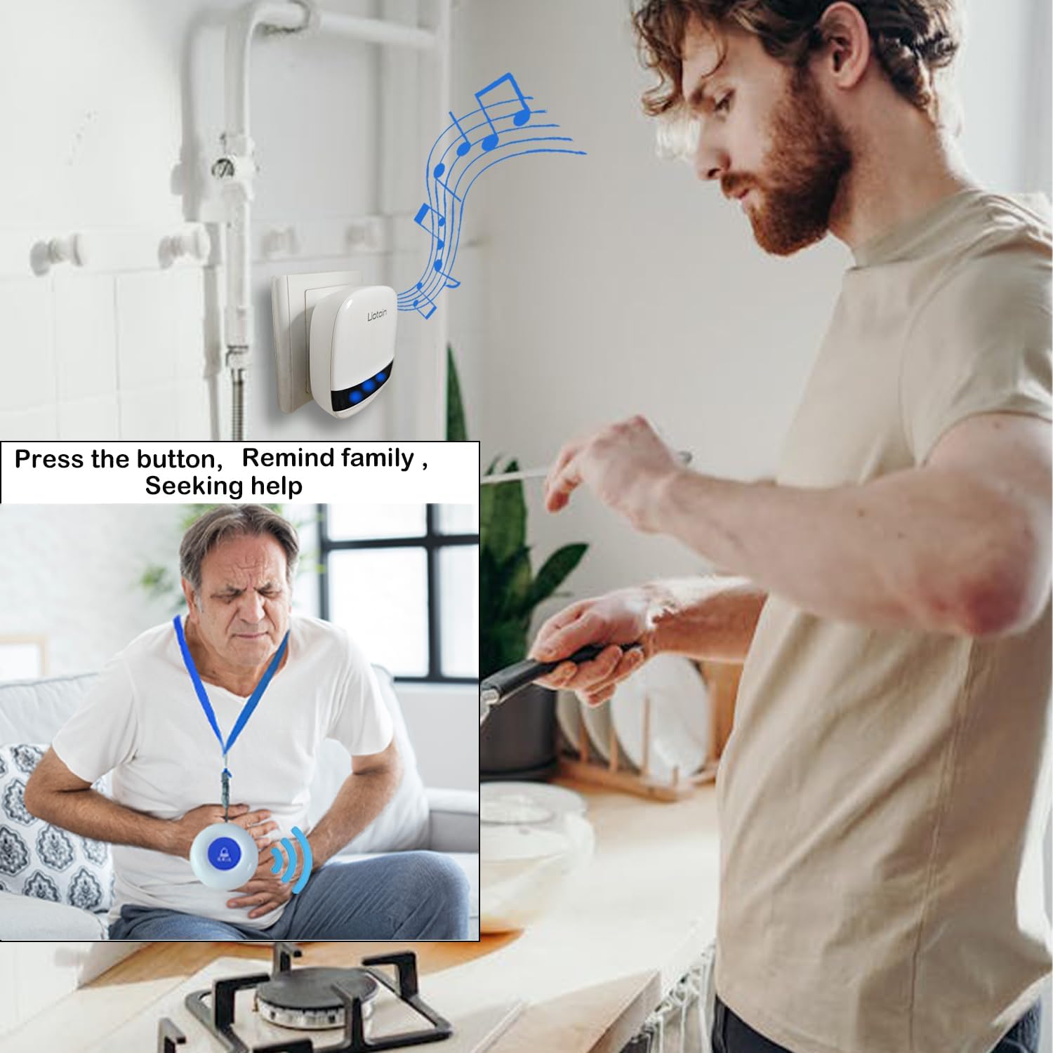 Easy to set up: When you need help, simply press the call button and the plug-in receiver will emit a loud sound, seeking help from caregivers in a timely manner, making it convenient to take care of family or patients