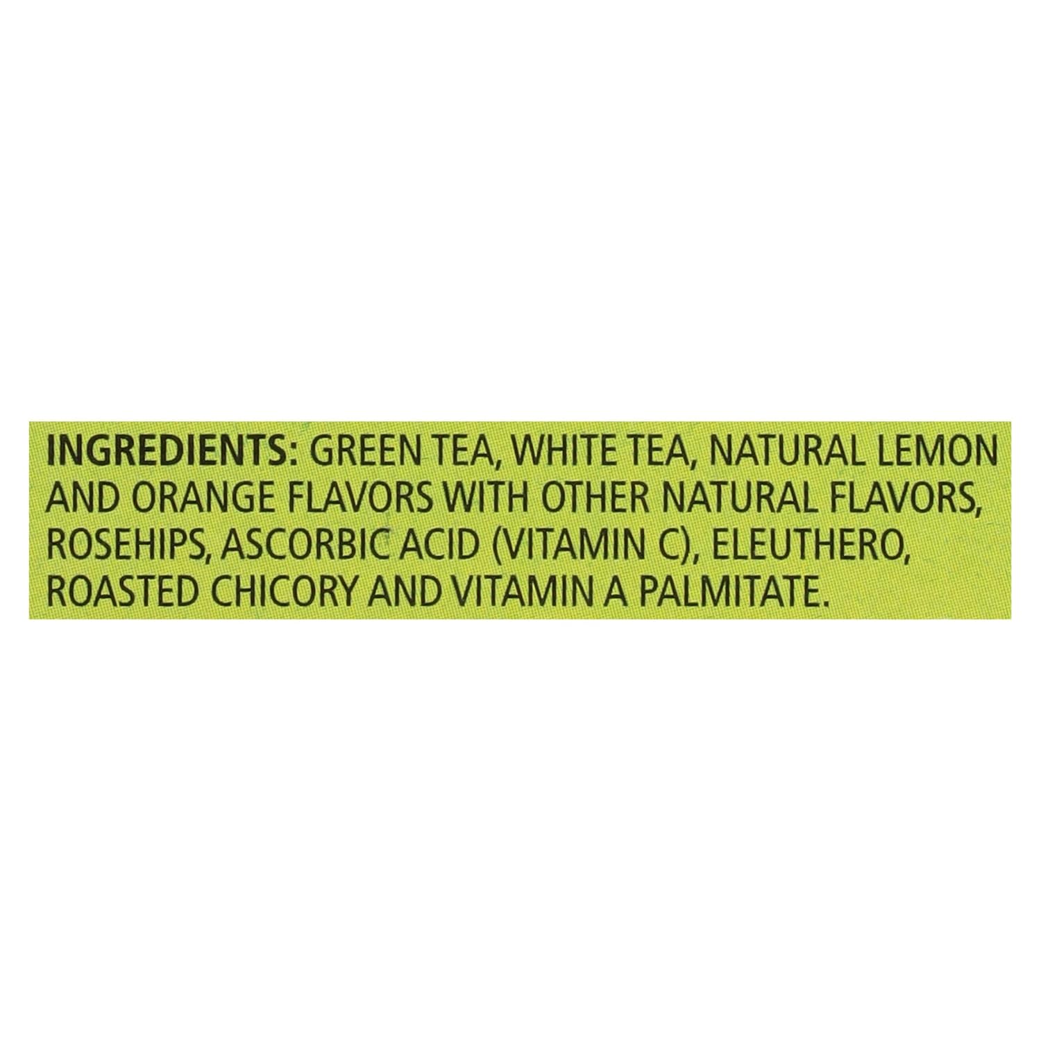 Supplement. Contains caffeine. 100% Natural. Antioxidant Green Tea gives you all of the health benefits of green tea–and more–in each delightfully refreshing cup. By neutralizing free radicals, this antioxidant-rich tea helps your body maintain its natural good health. Each serving delivers 110% of your recommended Daily Value (DV) of Vitamin C, 20% of your DV for Vitamin E, plus Vitamin A as beta carotene. We add energizing eleuthero root for even more lift. Enjoy the delicious citrus flavor in Antioxidant Green Tea hot or iced. Like many fruits and vegetables, this tea contains high levels of antioxidants to help support your health naturally. (These statements have not been evaluated by the Food and Drug Administration. This product is not intended to diagnose, treat, cure or prevent any disease.) Packaging may vary.