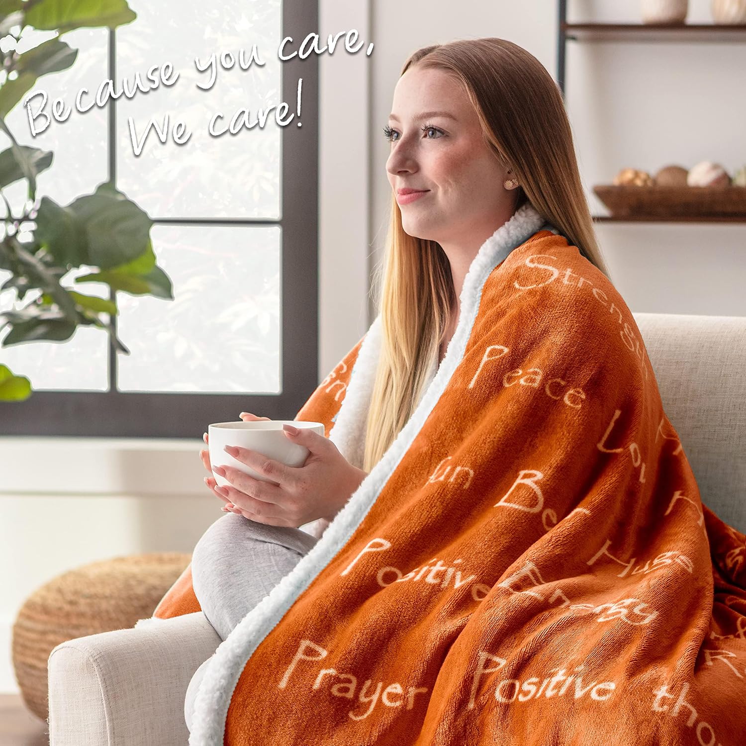 Chanasya Premium Sympathy Warm Hugs Gift Throw Blanket – Healing Gift Cancer Chemo Survivor Get Well Caring Gifts – Comfort Gift Blanket for Love Support Strength -Women Men Friend Grandma – Orange