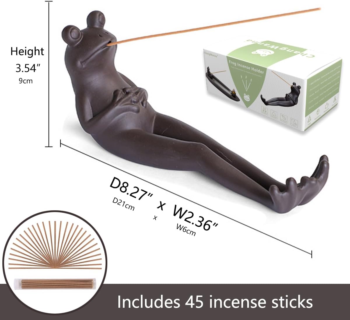 ChangWanna Frog Incense Stick Holder – Ceramic Insence Burner Ash Catcher, Insense Stand with 45 Sandalwood Sticks, Ornament for Aromatherapy/Yoga/Meditation/Home Living Room Office Decor