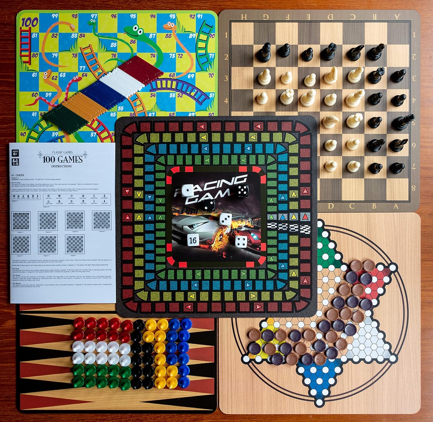 Classic Games, Enjoy 100 Different Games, Includes 5 Double-Sided Playing Boards, Fun for Children and Adults, For Ages 3 and up
