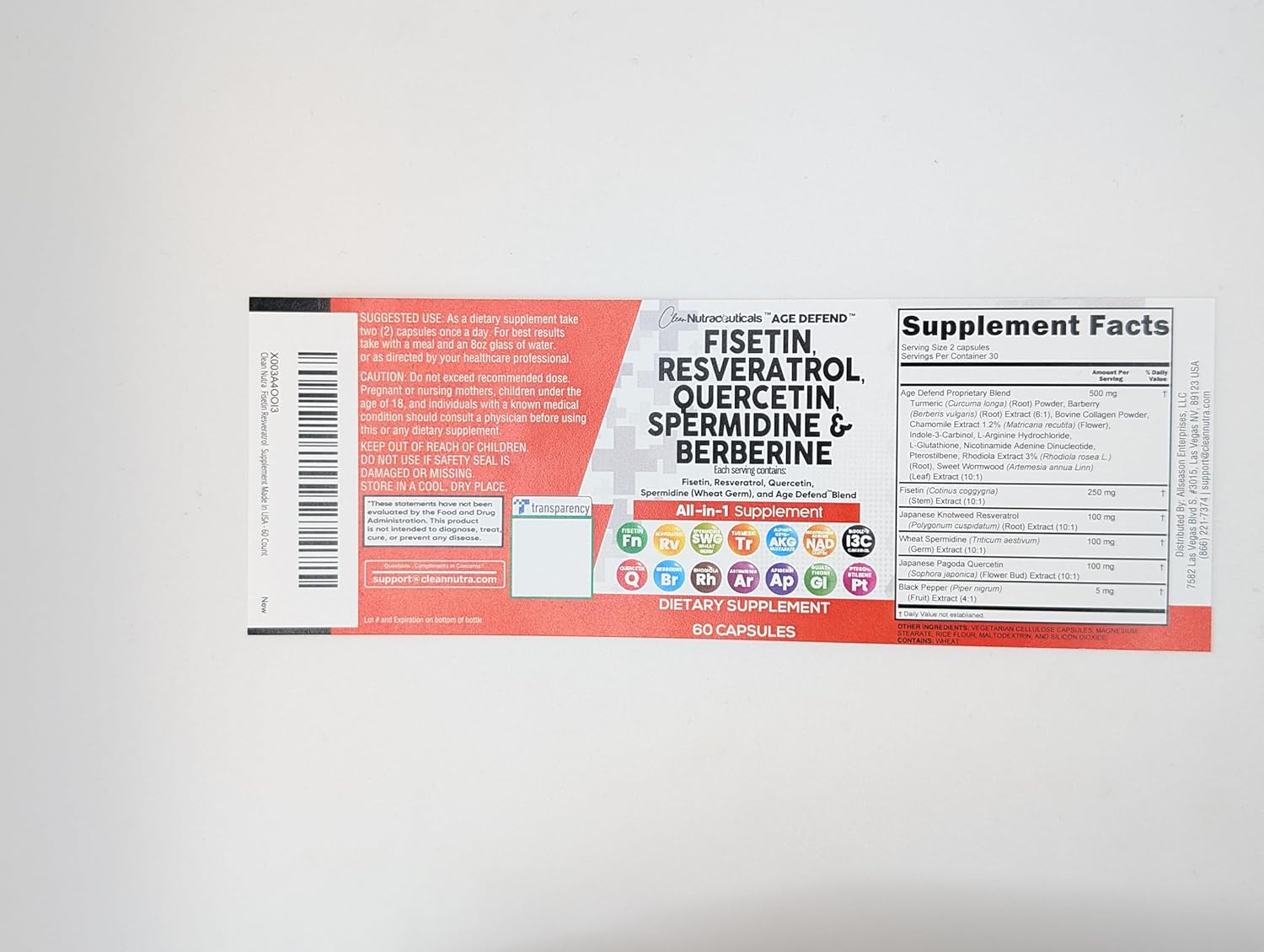 Clean Nutraceuticals Fisetin Quercetin Resveratrol with Spermidine Wheat Germ Extract – Health Supplement for Adults Longevity with Berberine, Collagen, Rhodiola, Apigenin