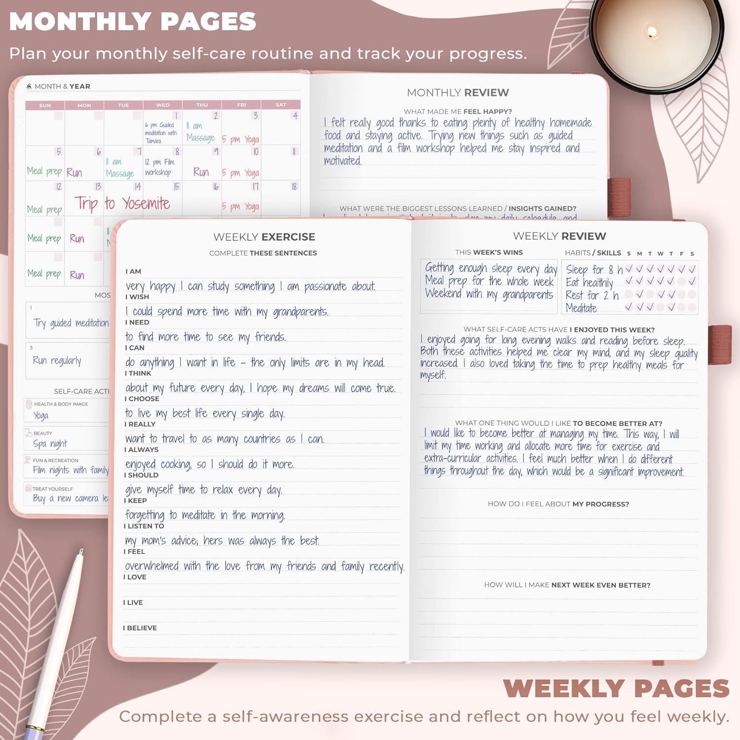 Accompanied by a quick-start illustrated guide, navigate your new self-care planner with ease and unleash its full potential.