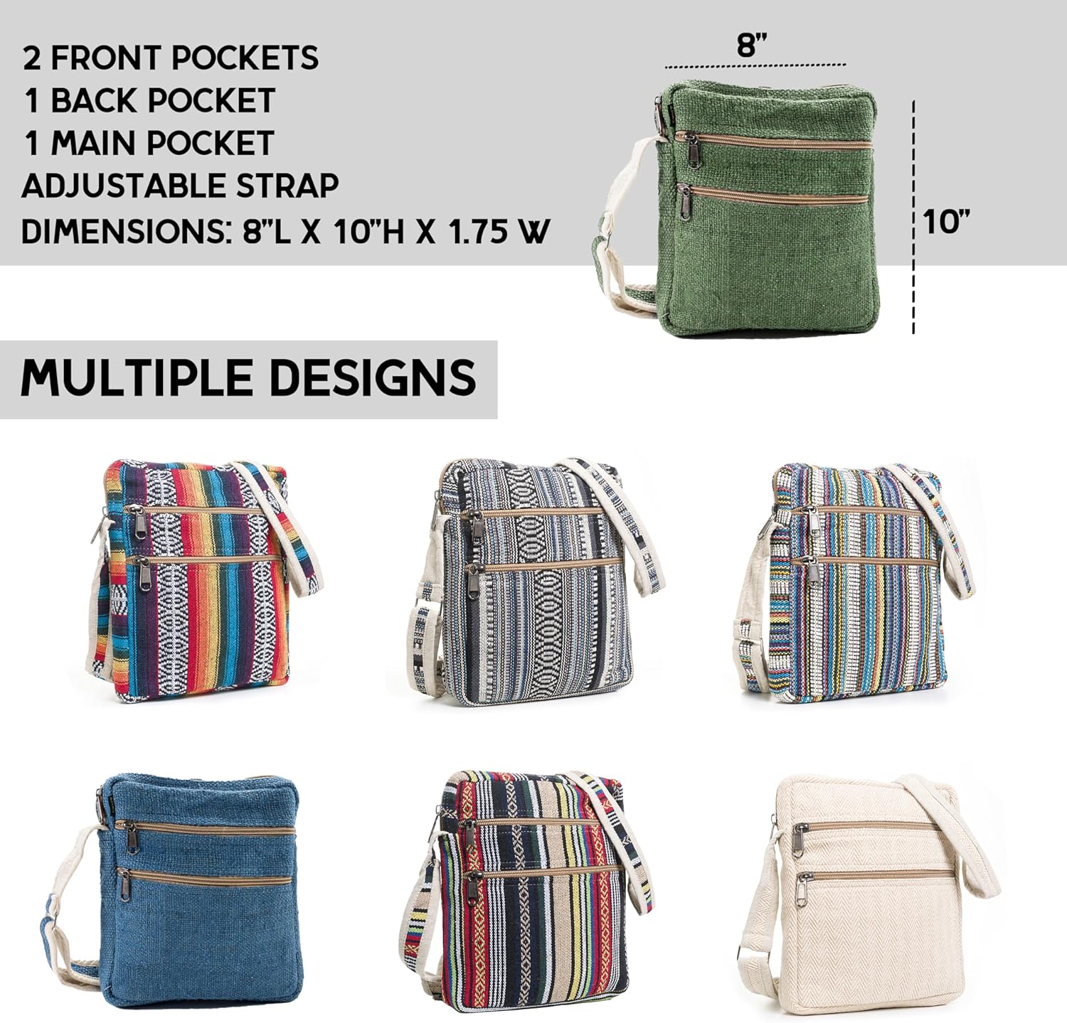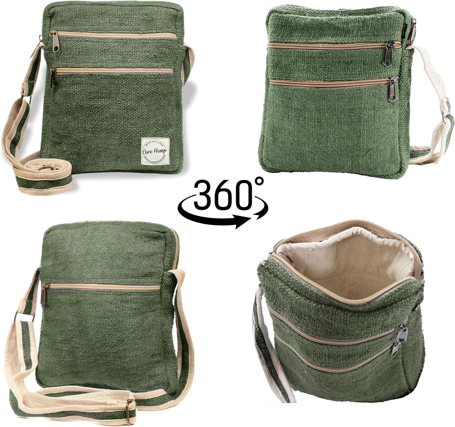 Core Hemp Multi Pocket Crossbody Bag Purse Made From Pure Hemp