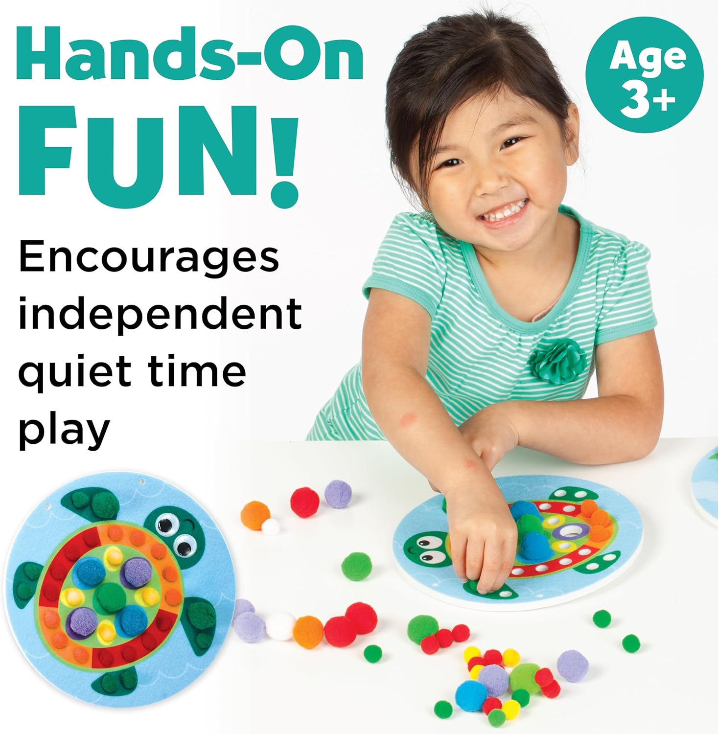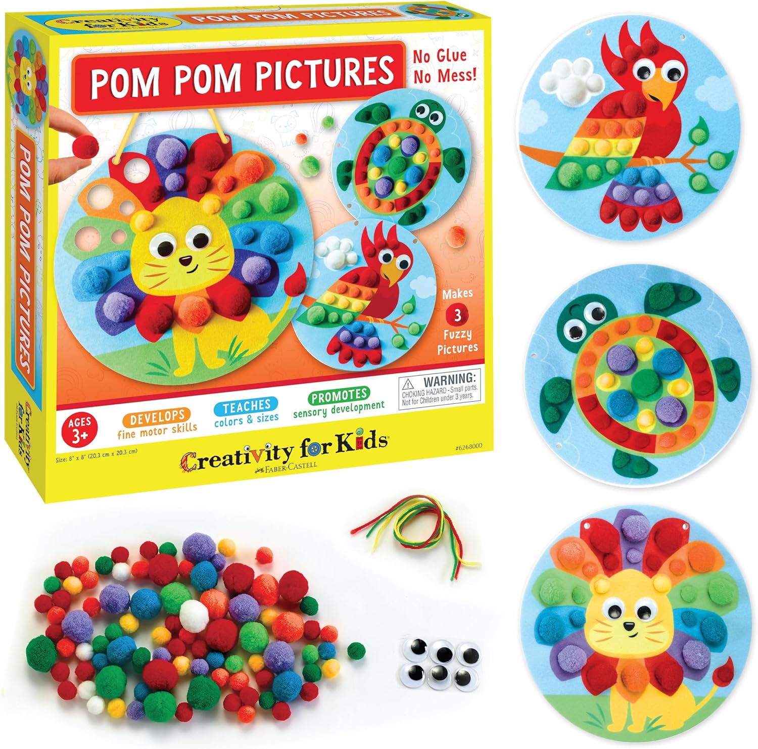 NO MESS PRESCHOOL TOYS: Creativity for Kids Pom Pom Pictures offers on-the-go fun that is perfect for toddler activities at home, preschool, and beyond. No glue, less mess! Thick foam holds pom poms in place, making it a perfect take-along kids travel activity for repeat play. Toddler crafts serve as a great way to learn about colors while nurturing creativity