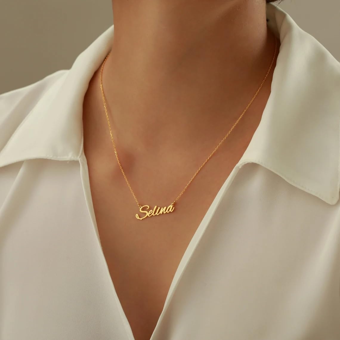 6 reviews for DayOfShe Personalized Name Necklace for Women 18K Gold Plated Custom Name Plate Necklace Jewelry Gifts for Mom