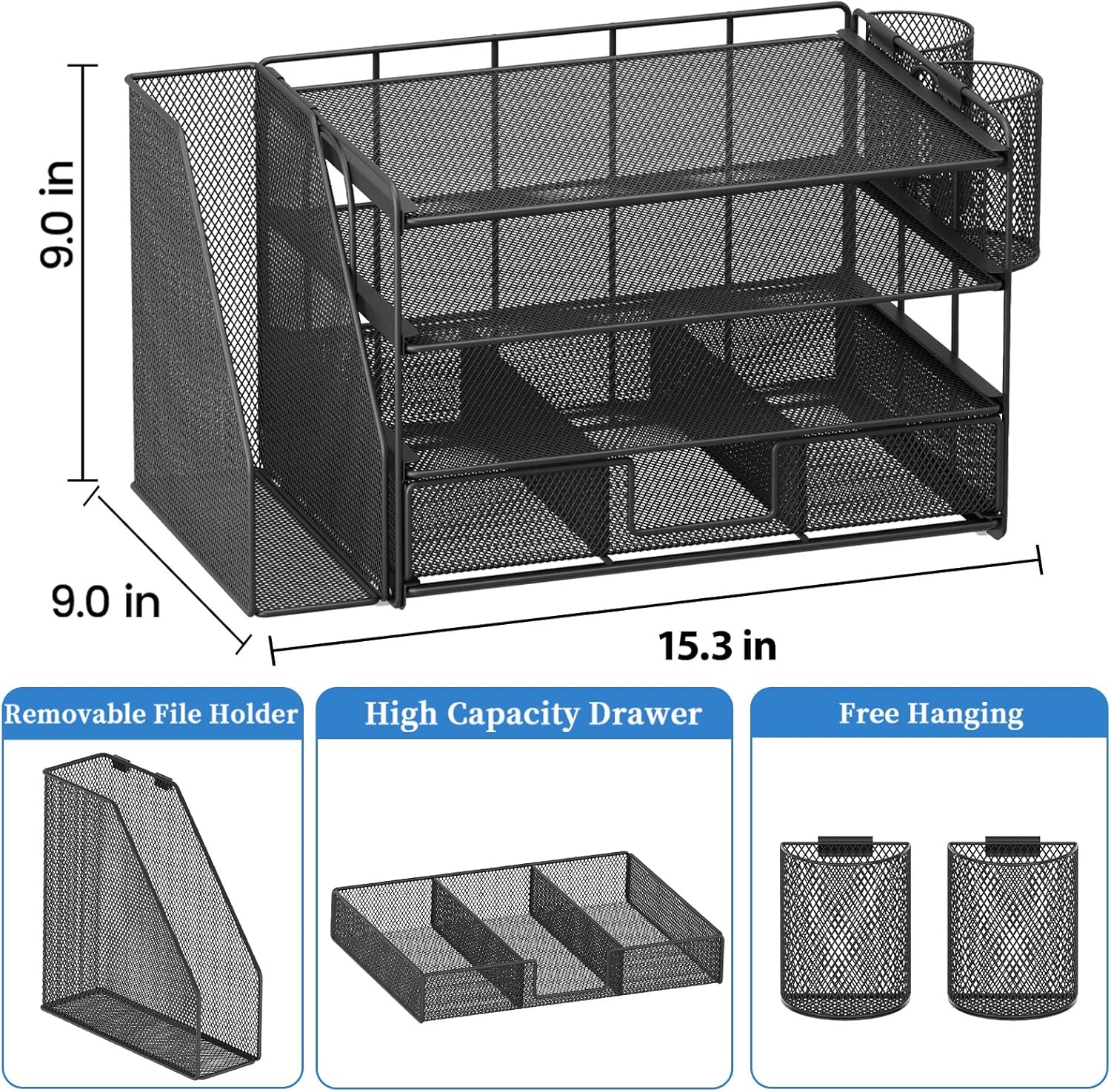 🎁【Premium Quality】Crafted from high-quality industrial-strength steel wire mesh and reinforced with a solid steel frame, our desk file organizer is built to last. You can trust that it will withstand the test of time and keep your workspace organized for years to come