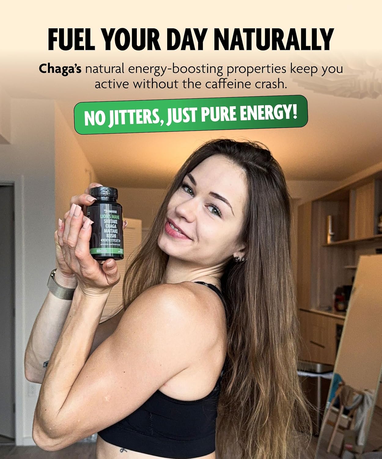 Helps Boost Your Immune System: Fortify your body with the power of Chaga, Maitake, and Shiitake Mushrooms. Each 100mg serving helps you strengthen your immune system to protect against daily challenges and maintain overall health. This Mushroom Blend is rich in natural compounds that help your body stay resilient, making it an essential addition to your wellness routine.