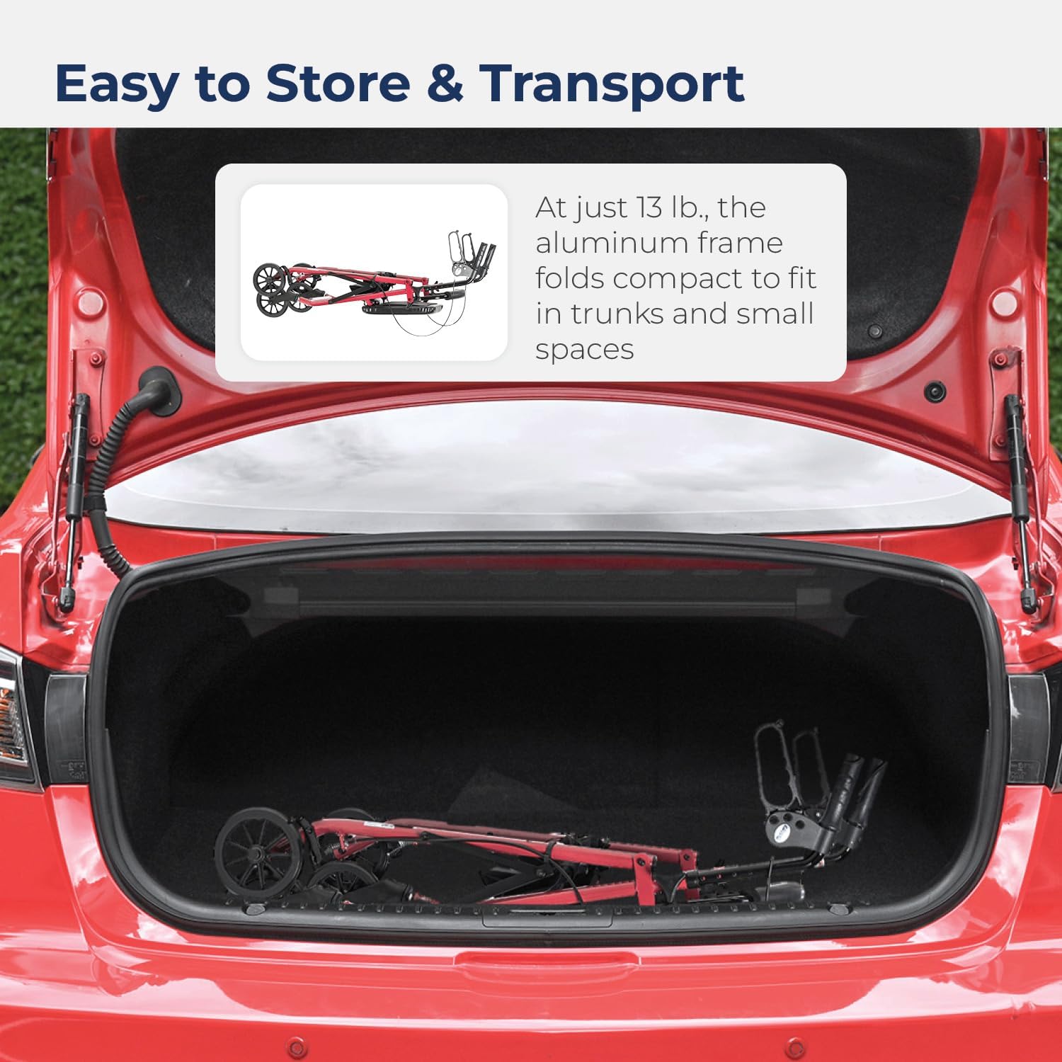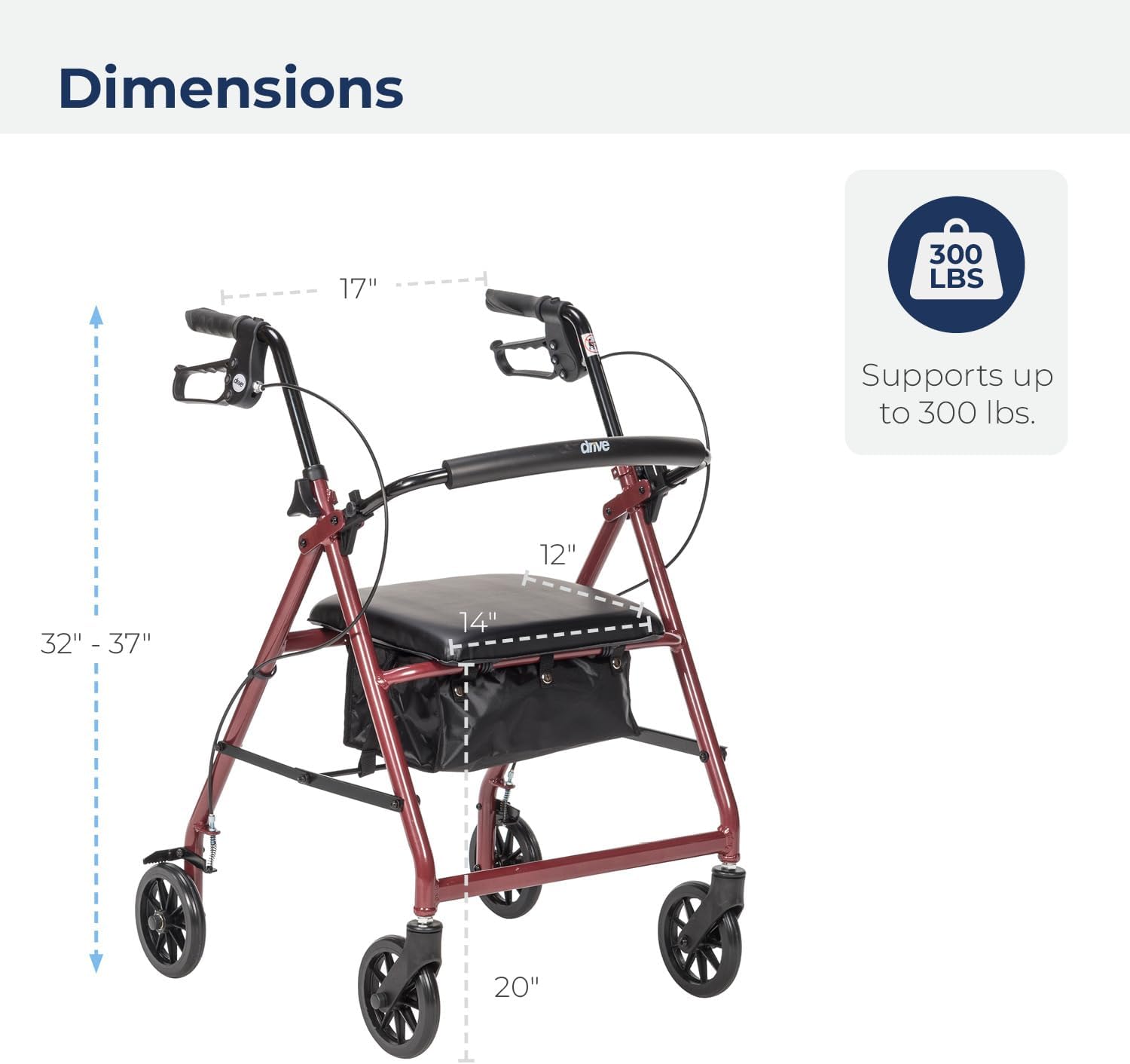 Sturdy and Lightweight: Just 15.6 pounds, the portable rollator is easy to transport; built for everyday use with a weight capacity of 300 pounds