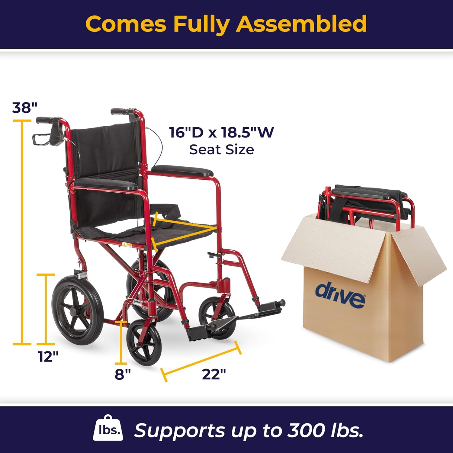 Home » Home > Shop > Health & Happiness » Drive Medical EXP19LTRD Lightweight Expedition Folding Transport Wheelchair with Hand Brakes, Ultra Lightweight Transport Chair for Seniors and Adults, Red