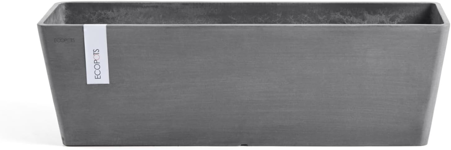 Ecopots Bruges Durable Modern Rectangular Indoor/Outdoor Recycled-Based Composite Flower Pot Planter, Grey, 17.75″