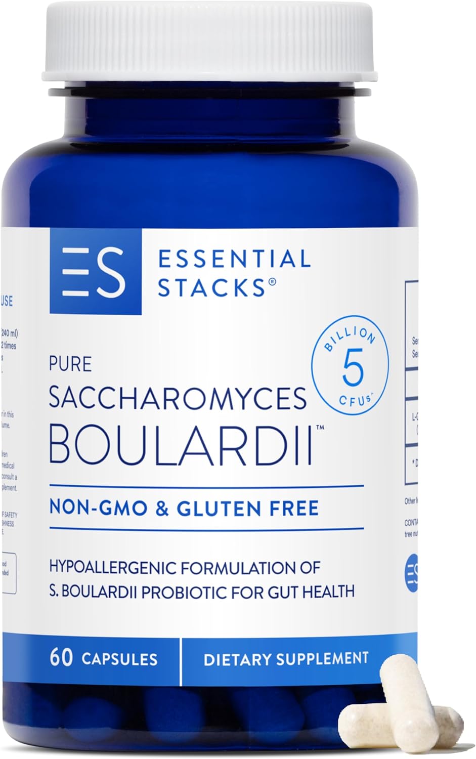 Essential Stacks Saccharomyces Boulardii Probiotics (Non-GMO & Gluten Free) – 5 Billion CFUs for Gut Health (60 Capsules)