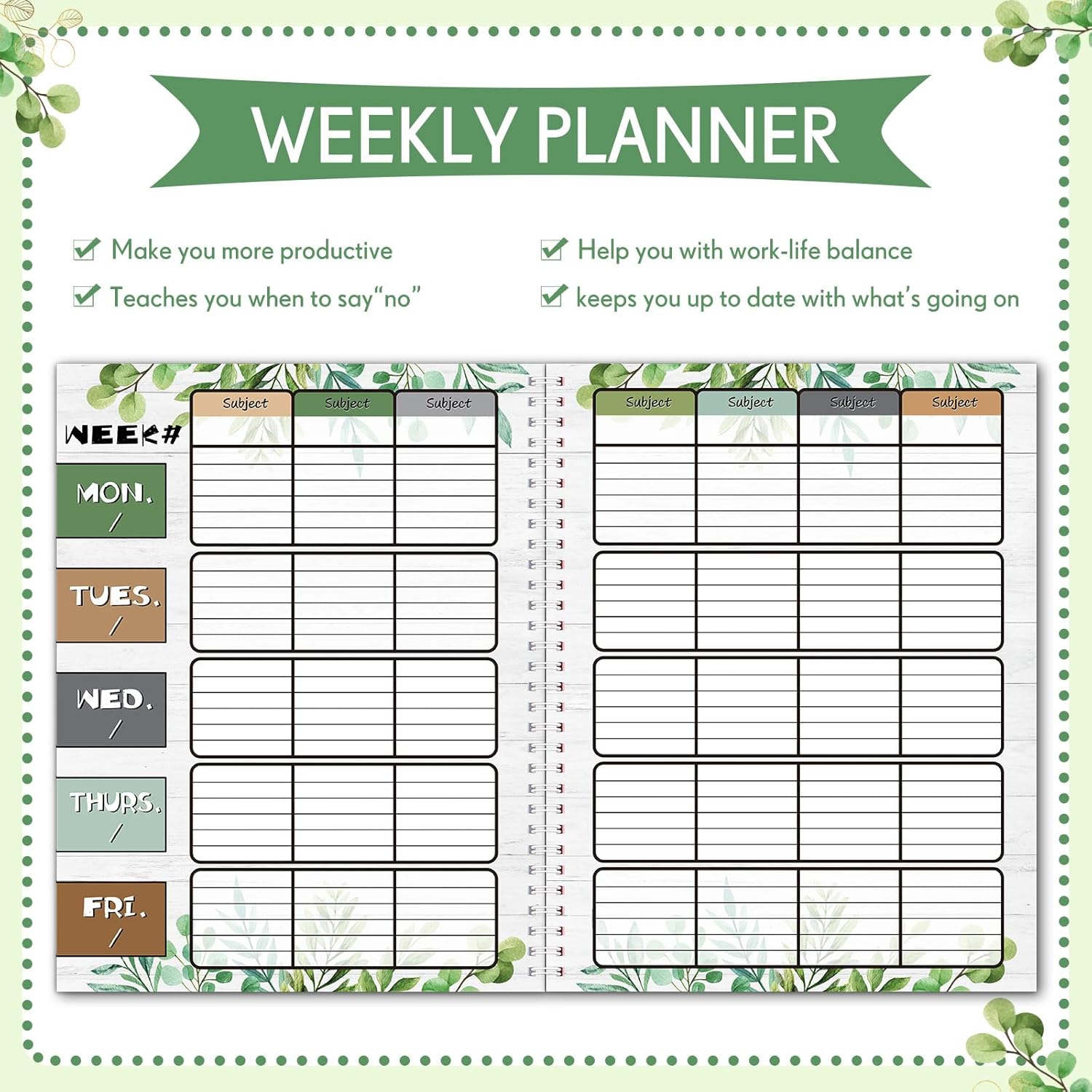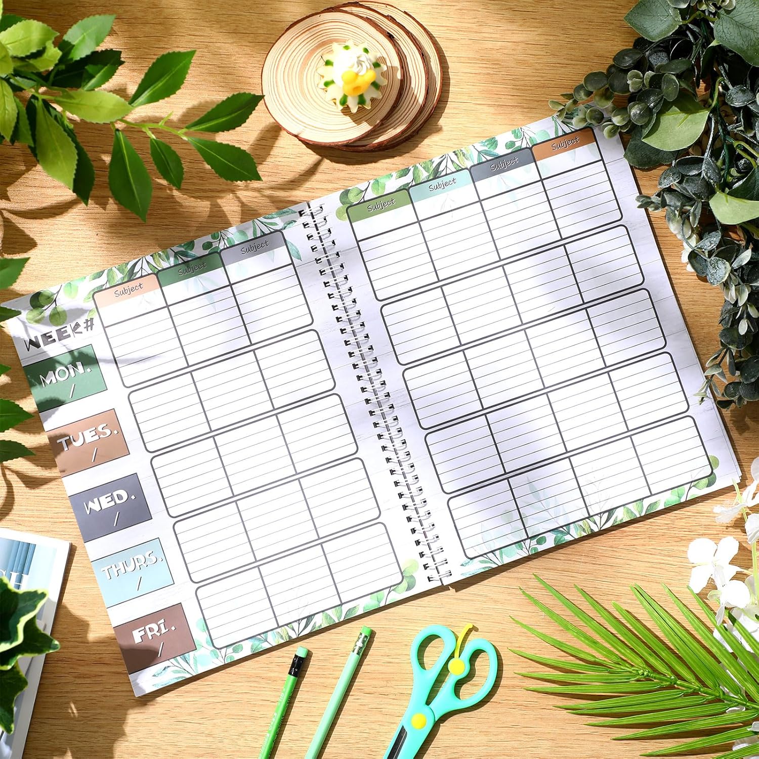Eucalyptus Teacher Planner Undated Academic Year Teacher Lesson Planner Book Green Plants Daily Weekly Monthly Spiral Planner Checklist Organizer with Stickers for Classroom, 8.5” x 11”
