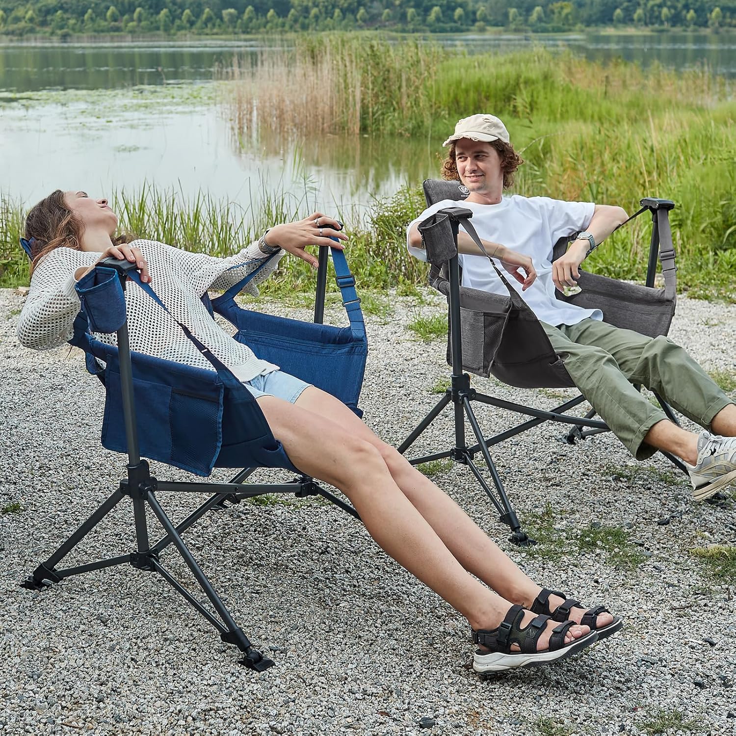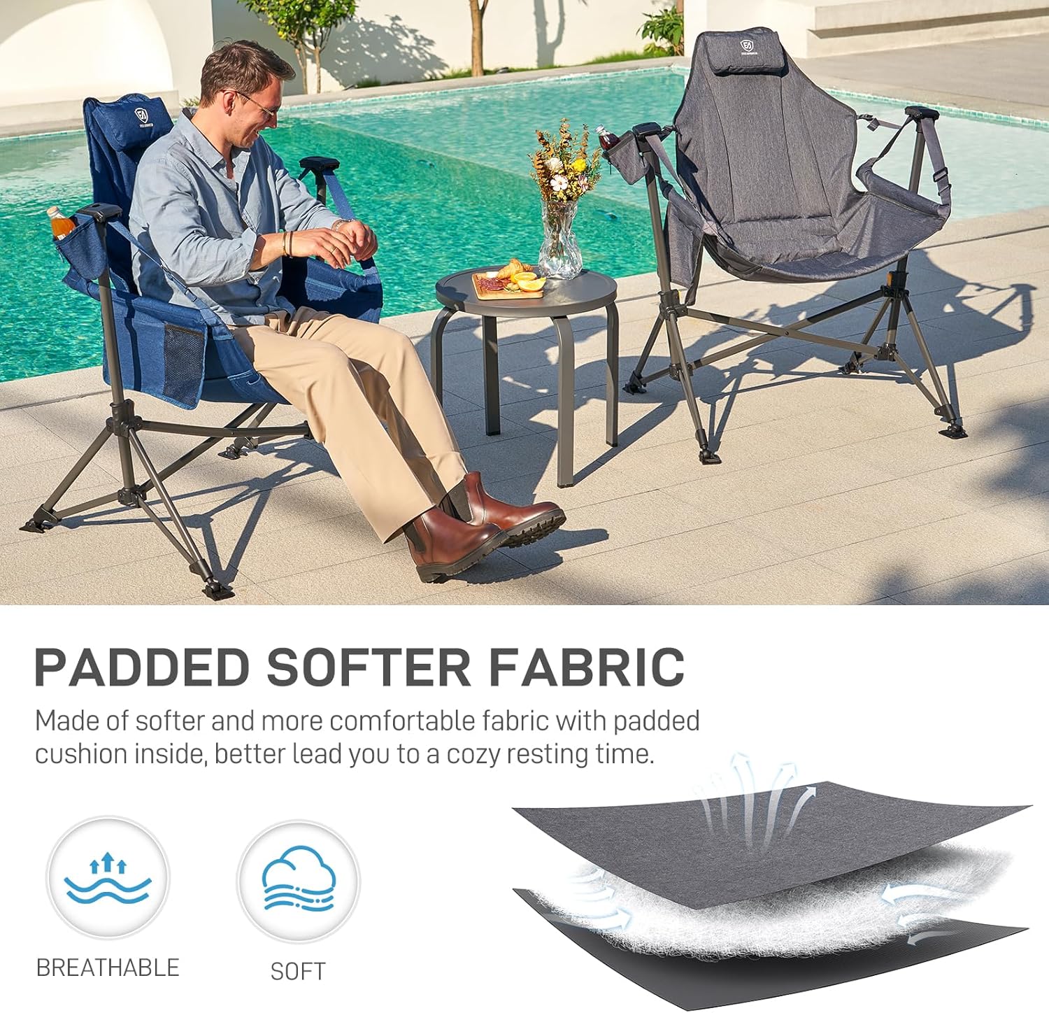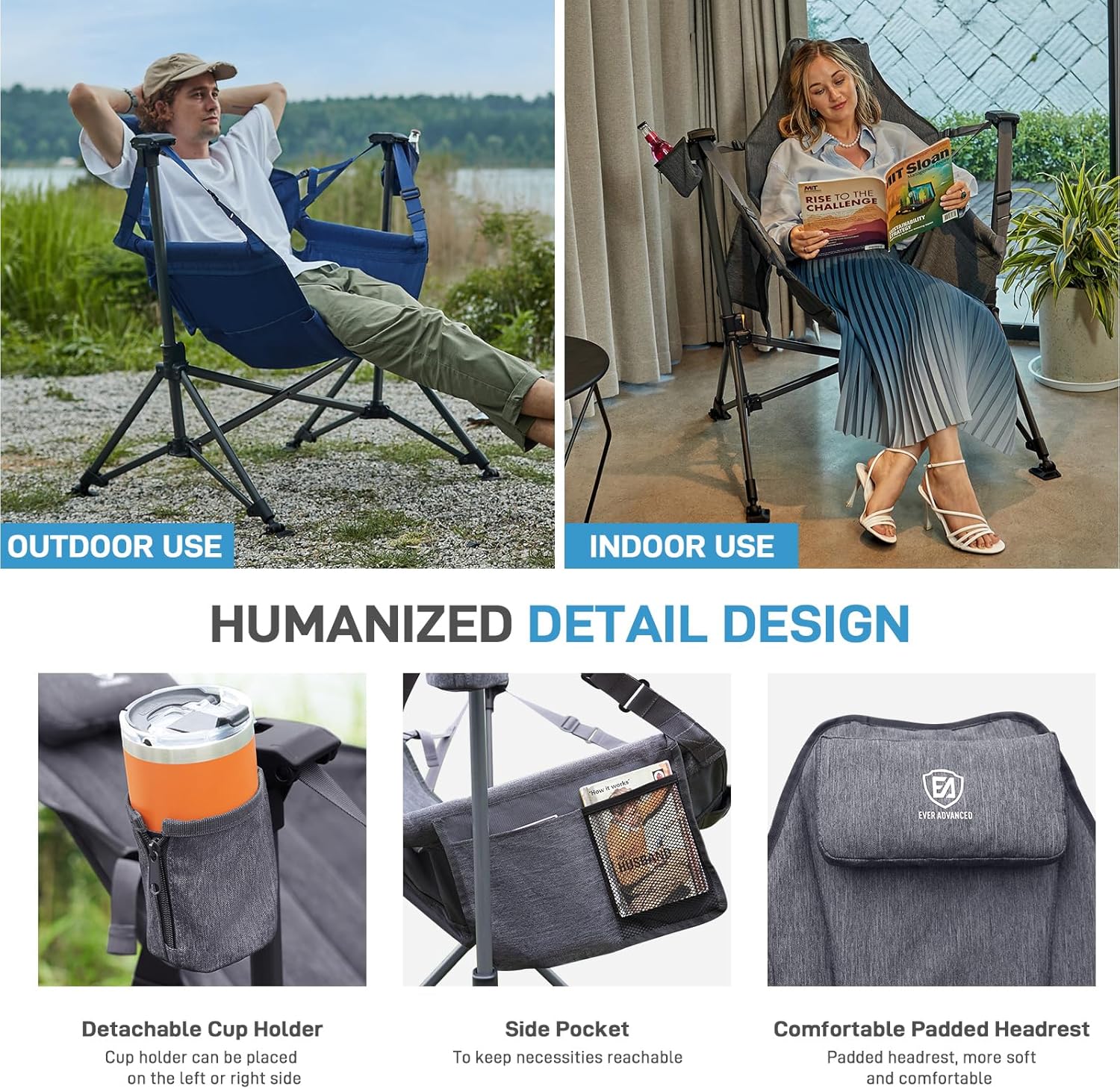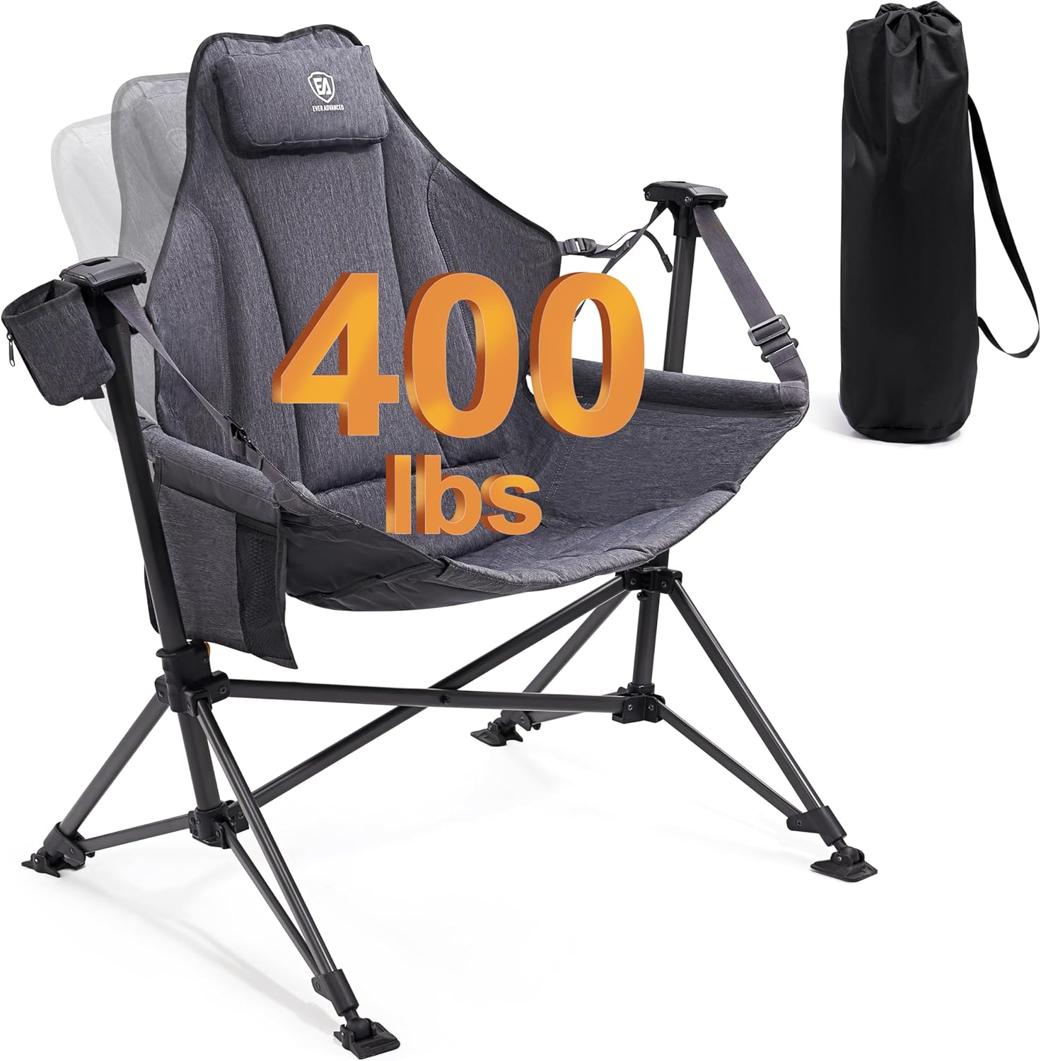 【Multi Purpose Uses】: EVER ADVANCED rocker camping chairs for adults that is built for anywhere: Enjoy your freely swing relaxing time whether indoor or outdoor.