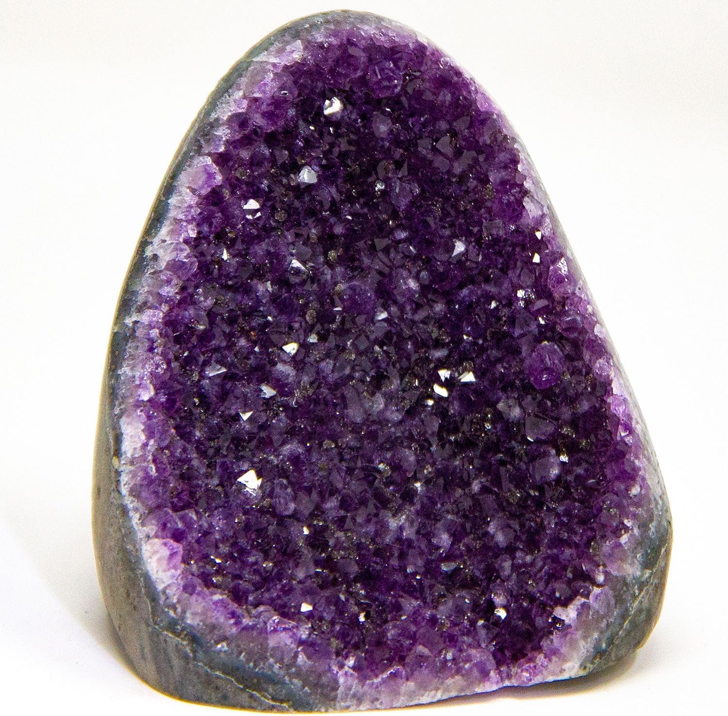 Immerse yourself in the captivating energy of deep purple amethyst with this our amethyst geode crystal clusters. Featuring polished edges and a basalt base, this natural geode from Uruguay radiates beauty and healing power, making it a perfect addition to your decor.