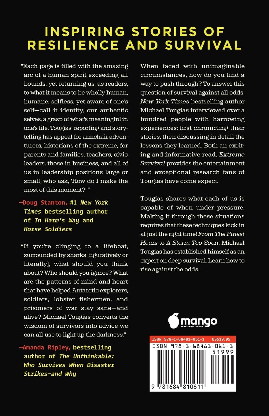 Explore the stories and the causes of manmade disasters. To answer the question of why disasters happen and how some survive, Tougias interviewed over 100 people who survived against all odds, first chronicling their harrowing survival stories, and then discussing in detail lessons learned. Extreme Survival delivers the entertainment and exceptional research Michael Tougias fans expect.